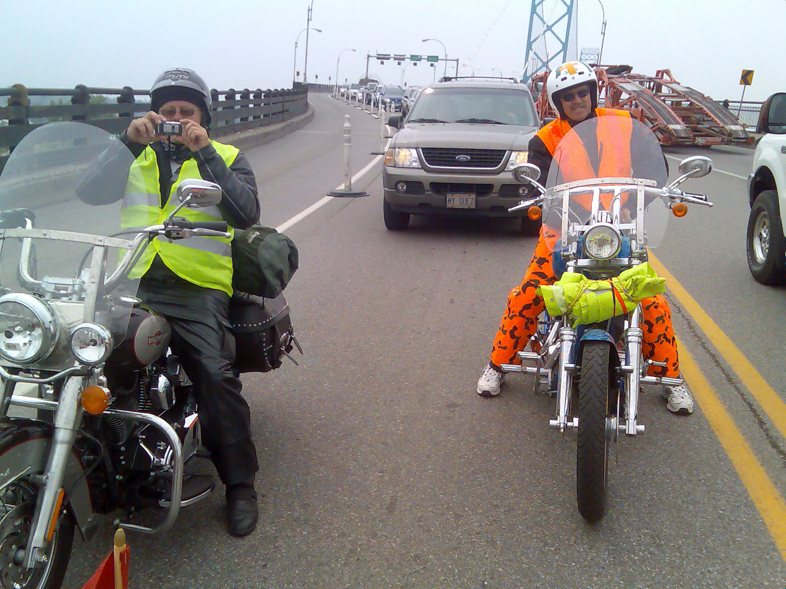 Tilbake til Canada igjen noen minutter senere endte turen opp i Chatham. Mens vi står på utsiden av hotellet ser vi 3 motorsykler kjøre forbi. Disse 3 syklene skulle vi treffe 4 ganger til på vår tur. Det viste seg at de var på vei til Chile og skulle være på veien i de 3 neste mnd.’ene.