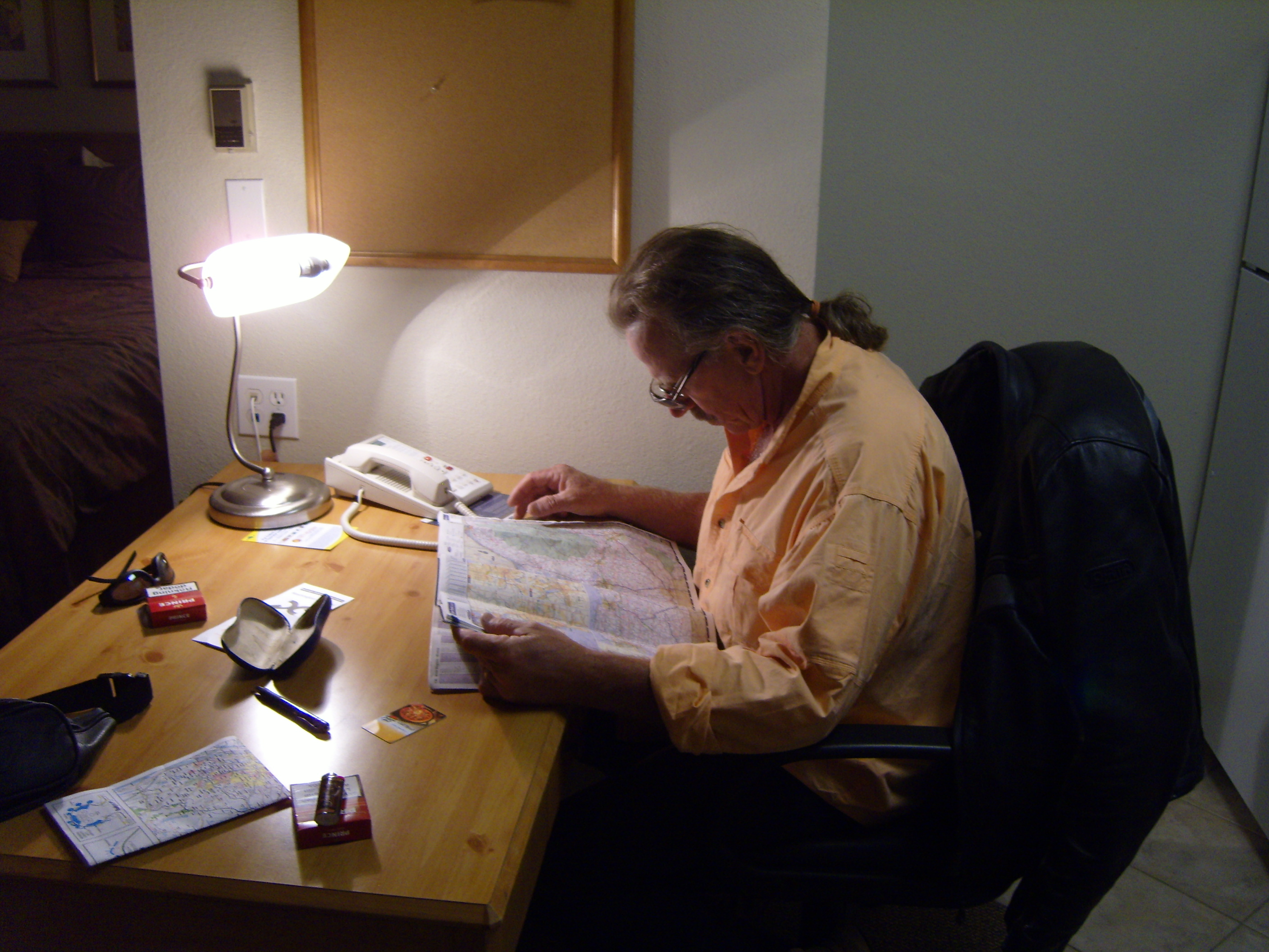 På hotellet hadde Torger allerede rigget seg på plass på rommet og begynt å studere kartene 🙂