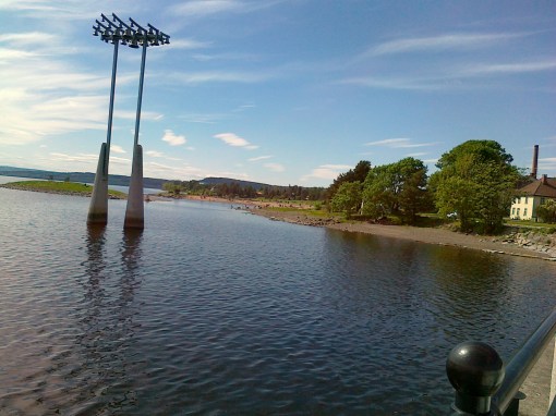 Flott å sitte på Mjøsa’s bredder i Hamar å titte utover.