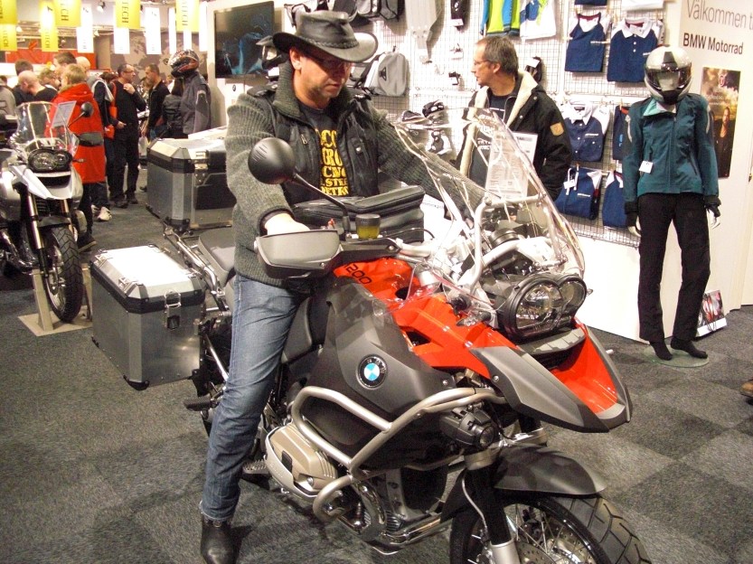 Maaaange sykler i forskjellig design ble prøvesittet . Både Yamaha, Suzuki, Triumph, Ducati, KTM, Kawasaki å andre merker men BMW R1200GS Adventure var sykkelen jeg først å fremst ville se litt nøyere på. Med sadelen helt på topp og uten kjørestøvlene på er, sykkelen i høyeste laget men senkes sete de 2cm det kan justeres ned og evt. setter på ett lavere sete, vil sykkelen helt klart la seg håndtere med kjørestøvlene på.