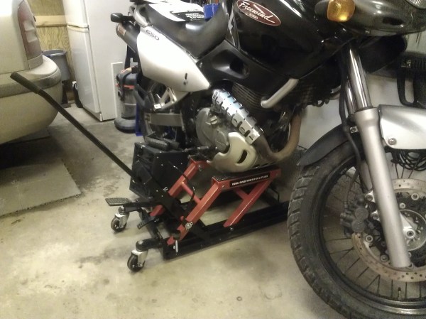 Fikk litt tid i garasjen ii dag. Fyrte opp snøfreseren for første gang å fikk ryddet vekk snøen rundt huset. Løftebokken til sykkelen er også kommet og ferdig montert. Så nå står Suzukien på bokken å kan trilles frem ved behov. Var innom NST en tur i dag å tittet litt på Warrioren også. Den så ut til å ha det godt 🙂