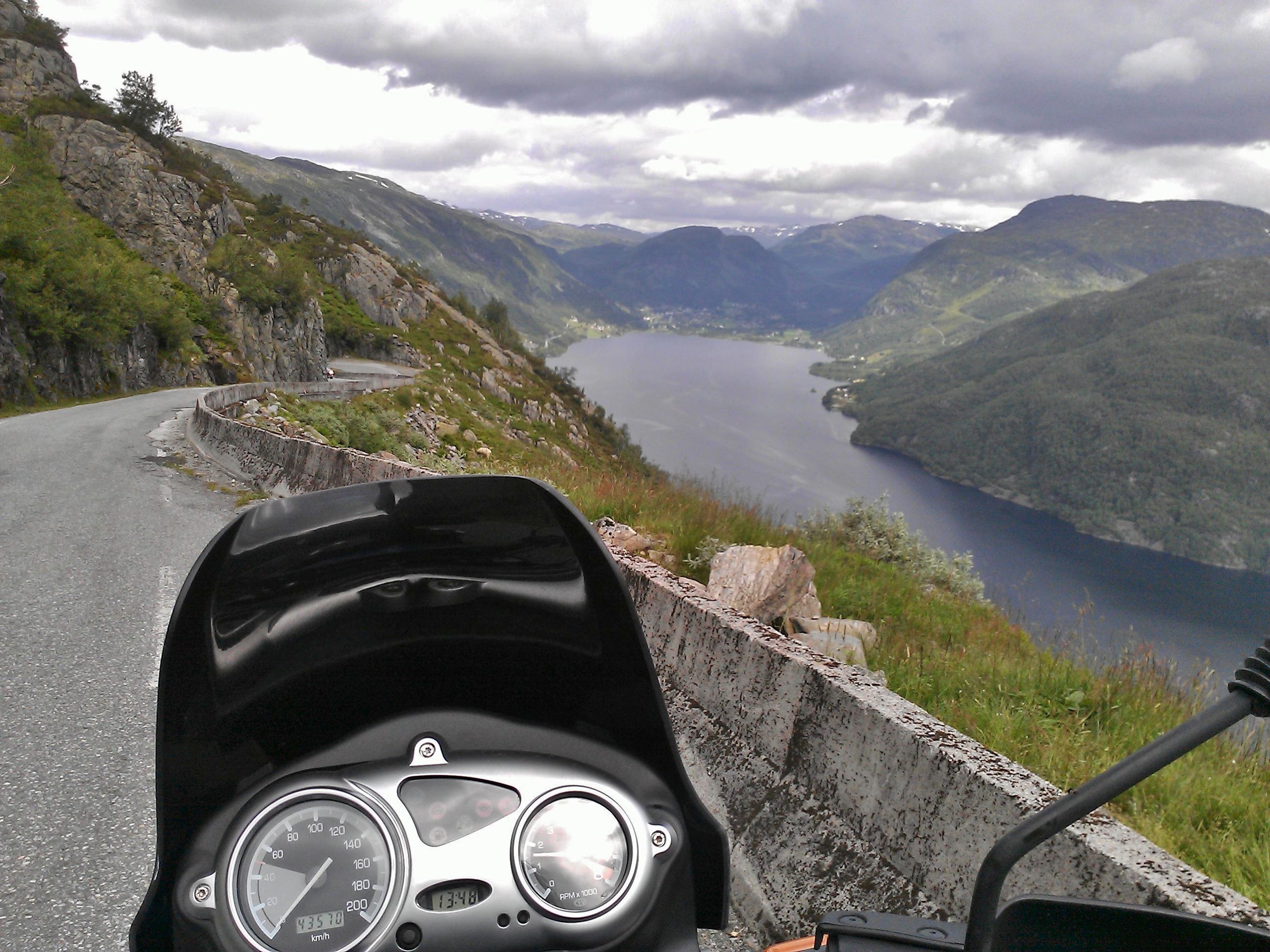 Mange andre mc’er var også på veien pluss litt bobiler. Å kjøre bobil fra Røldal og ned til Sauda kan jo være en utfordring hvis man er turist som helst bær holde seg på 4 felts motorveier, men de har altså en tendens til og også å velge disse veiene. Hadde de bare hatt vet til og ta seg pauser langs veikanten som oss andre 🙂