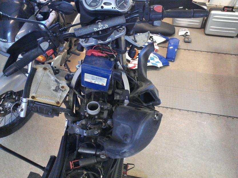 Så langt er plugg og plugghette skiftet, batteripolene fått seg en sjekk, batteriet er toppladet, ledningen til styringsenheten vært ute slik at den er resatt, så i dag tenkte jeg at det var på tide å demontere bensinfilteret og luftfilteret.