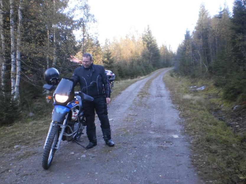 Selv i rolig tempo ser det ut til at Jonny måtte bremse litt for å klare å stoppe når veien plutselig stopper midt ute i skogen 🙂