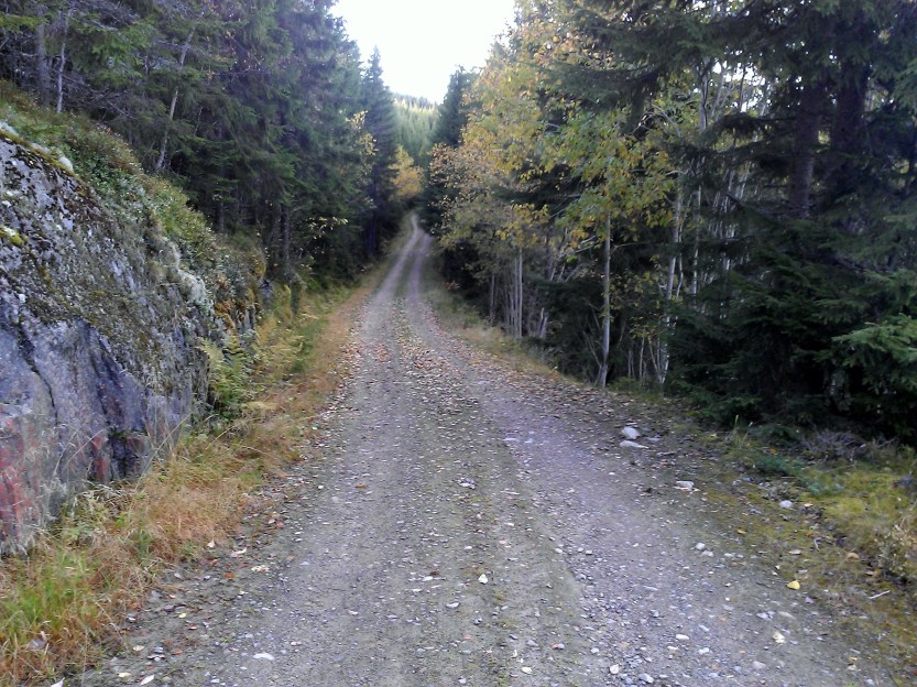 Det var frost på bakken når Jonny dukket opp her ved 10 tiden i dag, men siden planen var å kjøre på grusveier mesteparten av dagen tok vi av fra Mogreina å kjørte transportetappe på E6 til Minnesund. Rett nord for Minnesund tok vi av mot Strandlykkja og Trautskogen.
