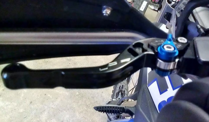 Her ser man hvor stor forskjell det er på Adventure Design sine High Performance Adjustable Shorty Aluminum Levers vs BMW sine originale hendler.