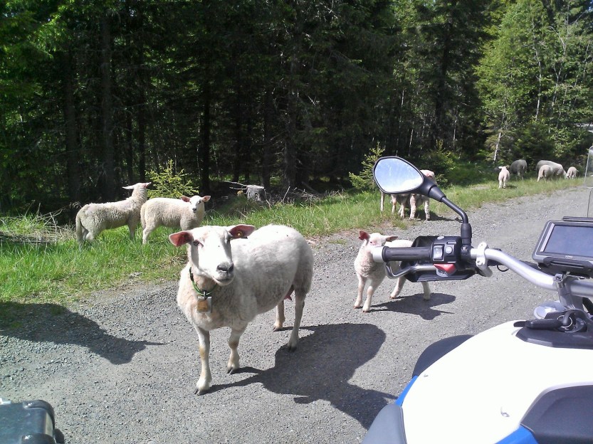 ………… gjennom skogsområder hvor bl.a. sauene beiter langs veiene 🙂