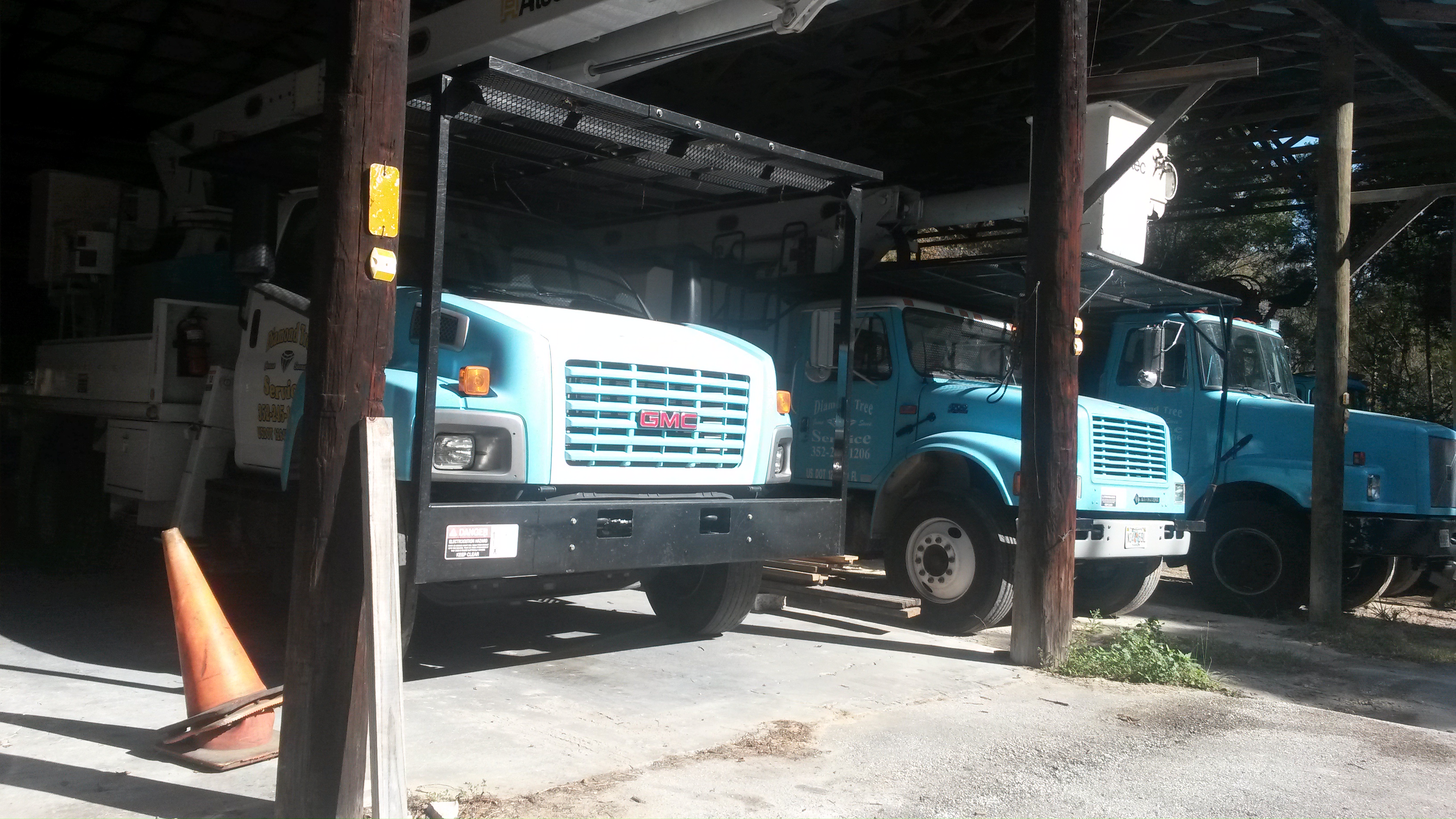 En tømmerbil og 2 bucket truck (hvis jeg ikke husker feil). Tror den ene hadde en rekkevidde på 75 fot og det skulle vell bli ca 23m.