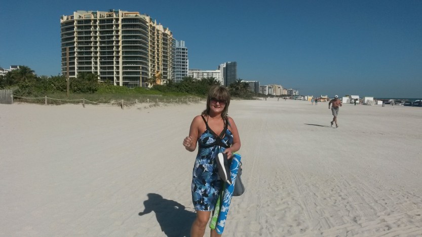 Klokken 10.15 hadde vi funnet ett hotell her i Miami som ligger 3 minutter ganger fra stranden. Dermed var det bare å ordne seg en solseng og finne roen.