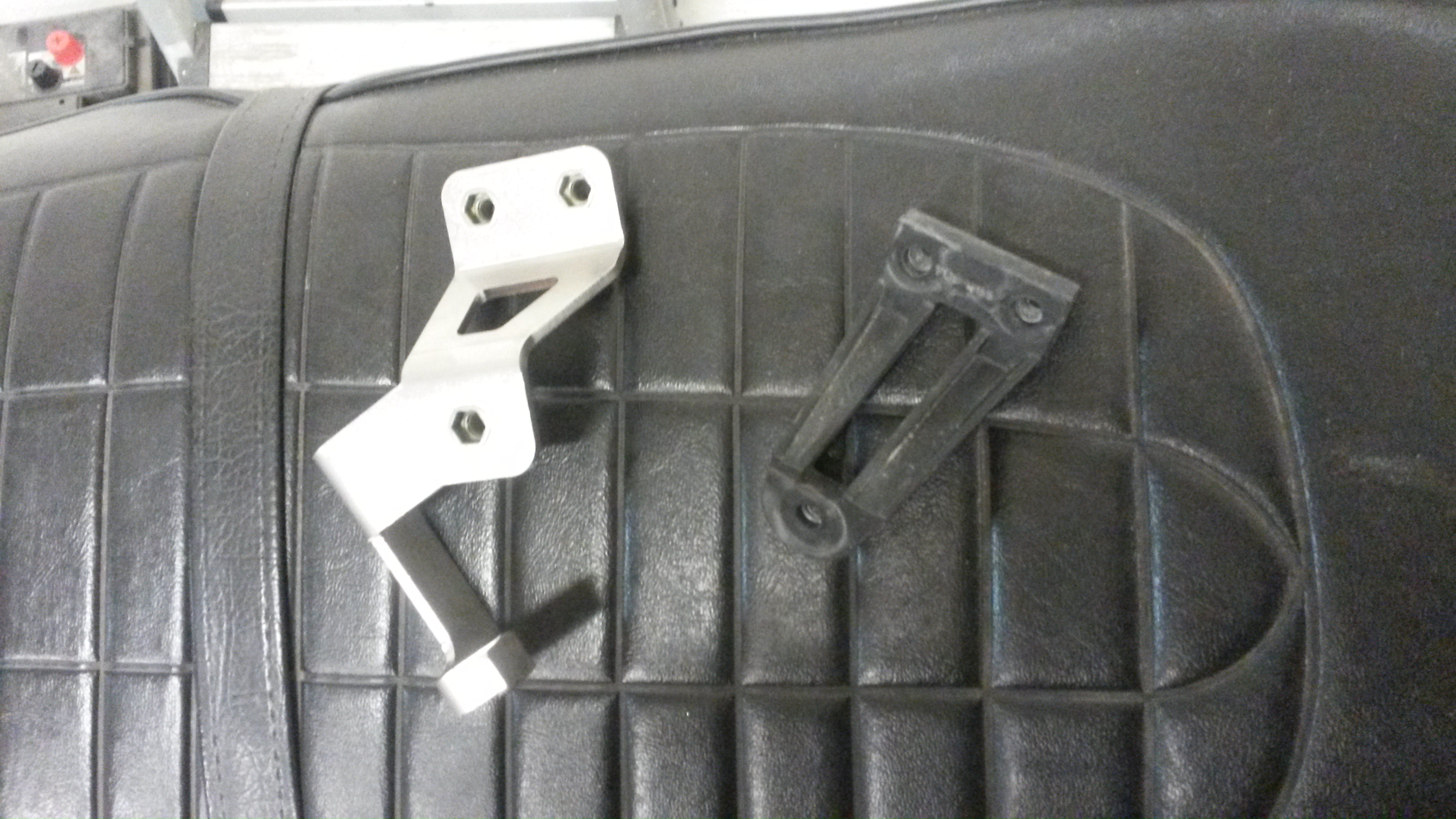 Braketten til radiatoren er i plast og er bare skrudd rett på. Så denne ble skiftet med Touratech 01-048-0465-0 sitt feste i 3mm syrefast som gir litt mer støtte.