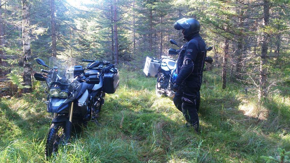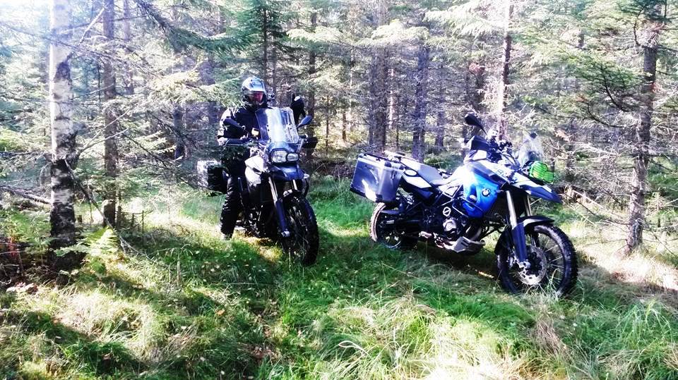 En sti opp i skogen så spennende ut så jeg la kursen opp gjennom lia. Det var bratt og vått men jeg hadde ikke før parkert før Jonny også var på plass 🙂