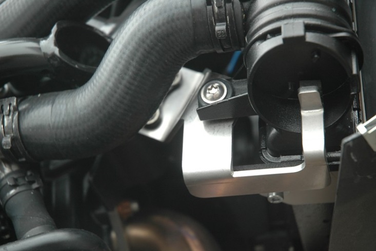 Noe av det siste som ble montert var en forsterkning til radiatoren. Originalt sitter radioatoren bare festet med 1 enkel bolt pluss x antall gummioppheng. Så ved ett velt kan radiatoren faktisk løsne. Så ved hjelp av 01-048-0465-0 blir forhåpentligvis dette litt bedre.