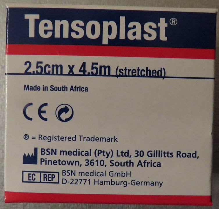 I tillegg kjøpte jeg en rull med Tensoplast. Hvis det ikke slutter å blø med disse tingene får vi lukke det med en glødende kniv. Det har jeg sett at man gjør på film 🙂