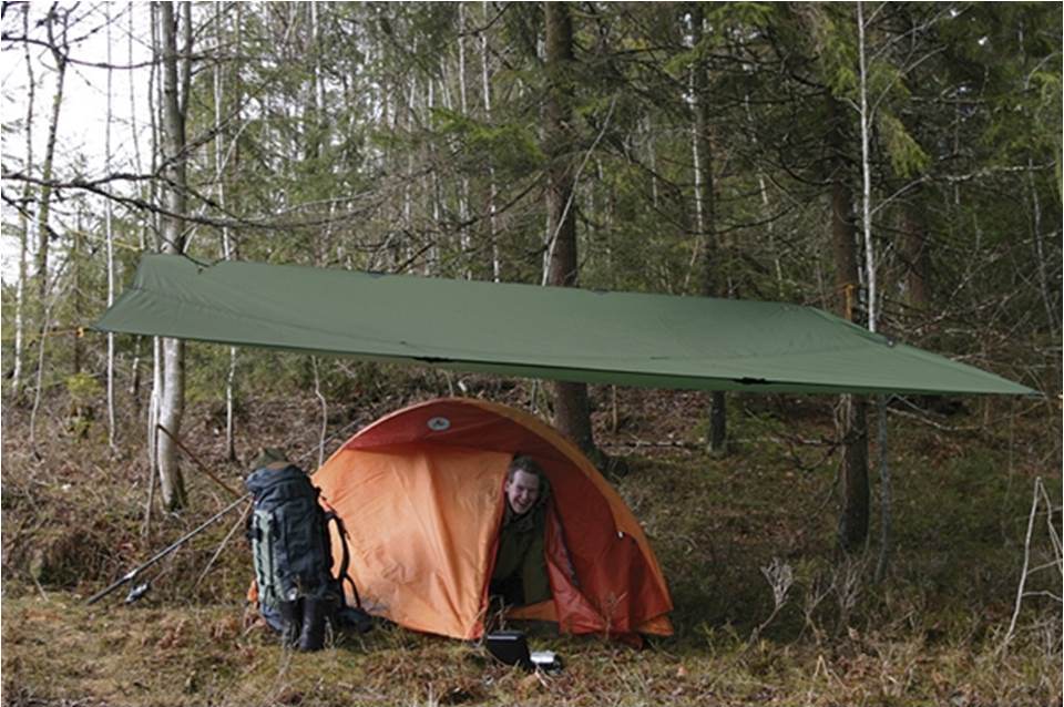 Kan brukes som teltduk, solseil, gapahuk, som et overseil for og gi et tørt område rundt teltet, etc.