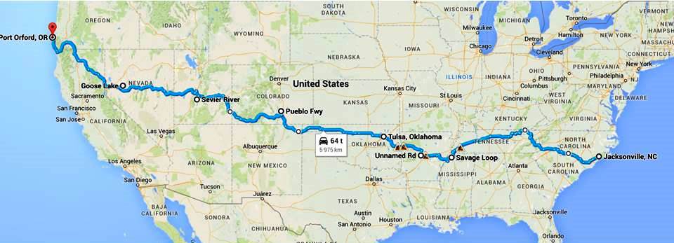 Totalt sett snakker vi om ei rute som går gjennom følgende stater: