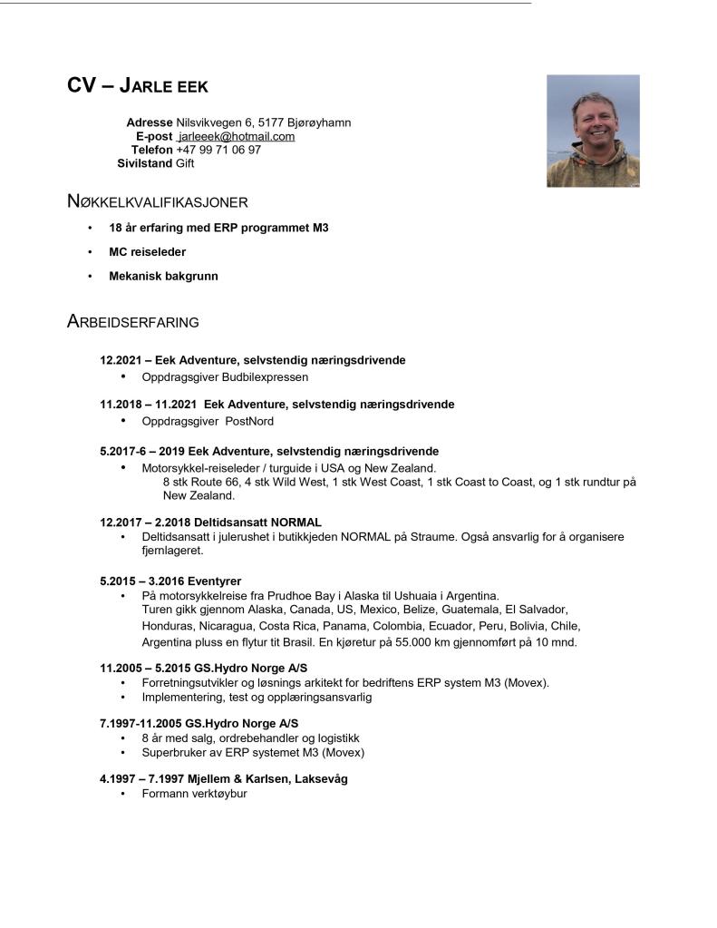 Lagt ut på 2015-02-212023-06-26 Min CV CV Jarle Eek CV Jarle Eek Del dette: Klikk for å dele på Facebook(åpnes i en ny fane) Facebook Klikk for å skrive ut(åpnes i en ny fane) Skriv ut Klikk for å dele på X(åpnes i en ny fane) X Klikk for å sende en lenke med e-post til en venn(åpnes i en ny fane) E-post Lik Laster inn... Relatert