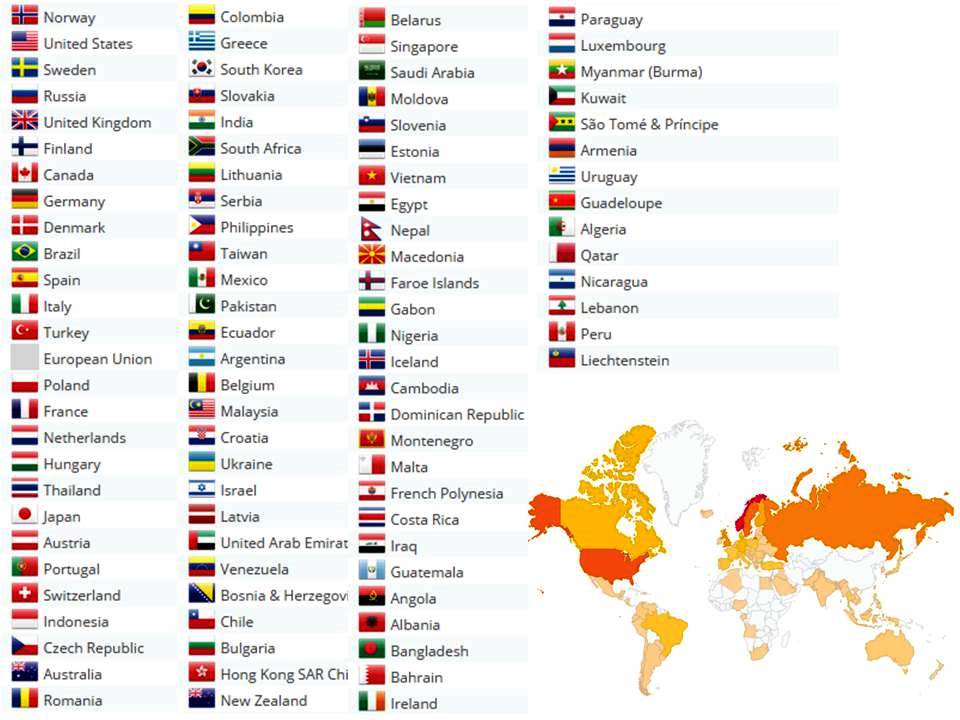 At det er besøkende fra 95 land som har vært innom bloggen så langt er også inspirerende. Det er selvfølgelig flest treff fra Norske brukere, men også USA, Sverige, Russland, UK, Finland, Canada, Tyskland og Danmark er innom med jevne mellomrom. Om det er rene bildesøk som gjør at de dropper innom bloggen eller eller at de bruker web lesere som oversetter tekst slik at de like vell får nytte ut av det som skrives vet jeg ikke så mye om. Flesteparten av de som følger bloggen via e-post varslinger er Norske men det er også en del utenlandske så web lesere som oversetter er nok helt klart ett godt hjelpemiddel.