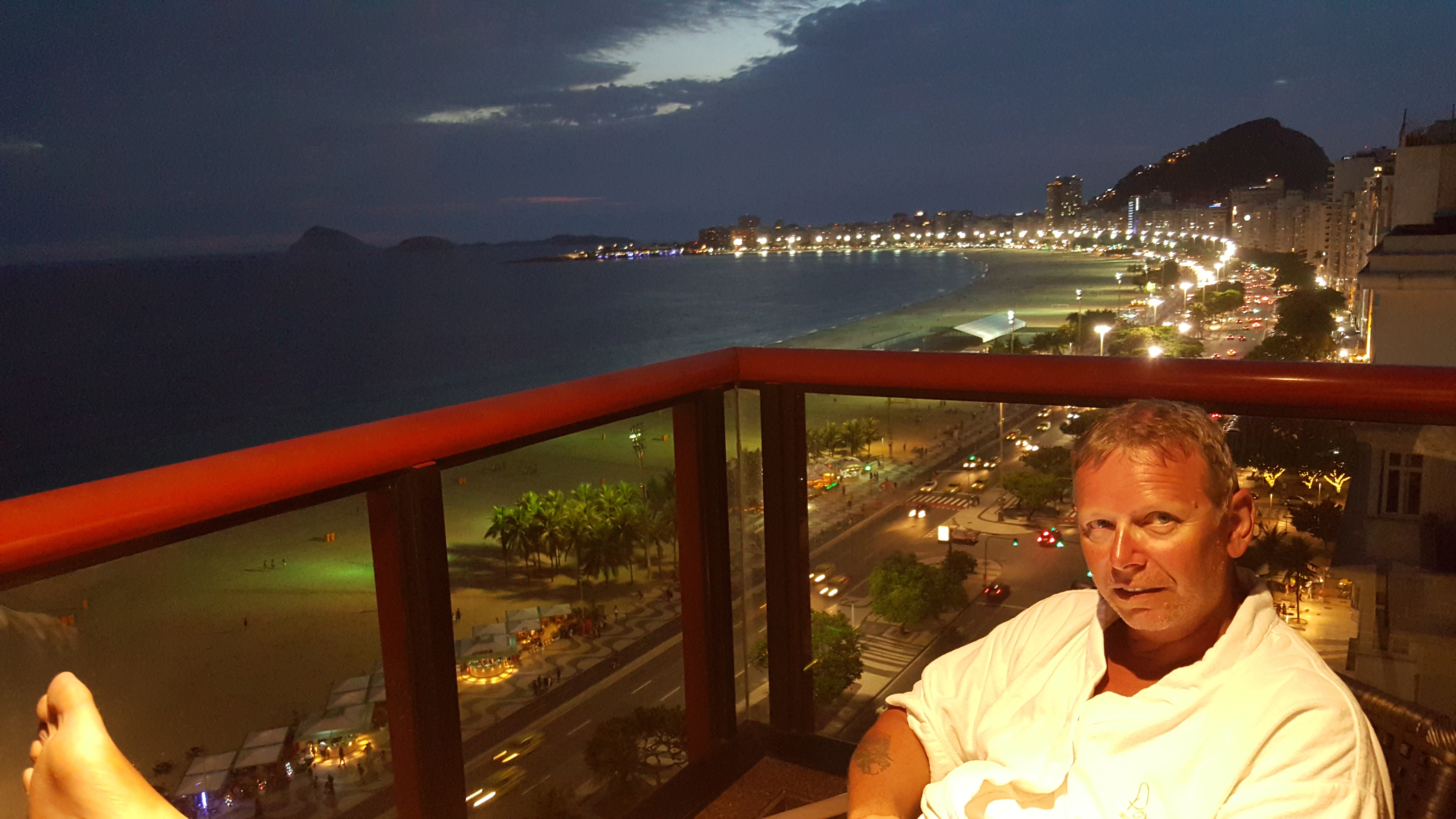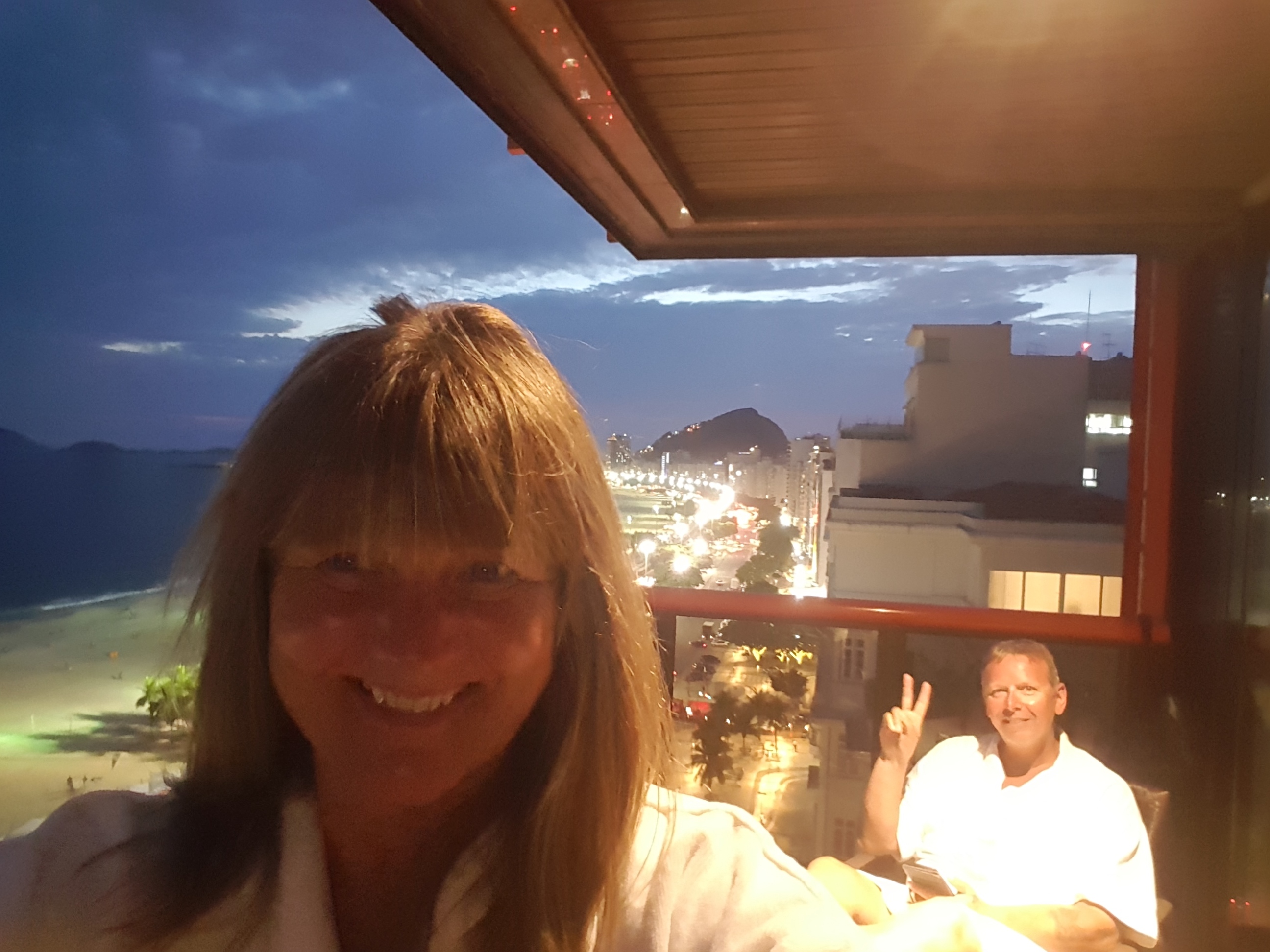 Etter å ha sovet ett par timer var Nina klar til å finne sol stolene til Hotel Porto Bay nede på Copacabana beach.