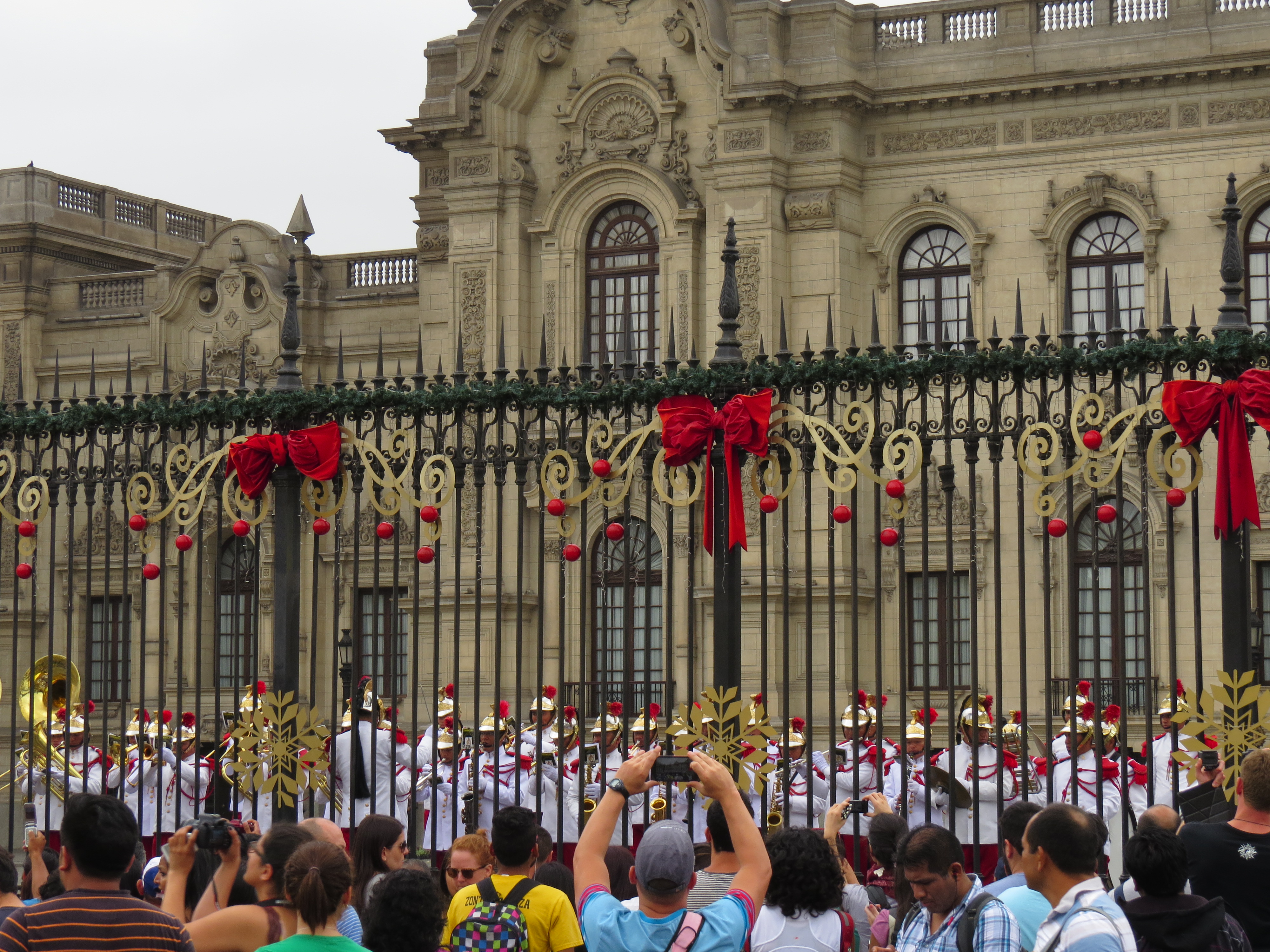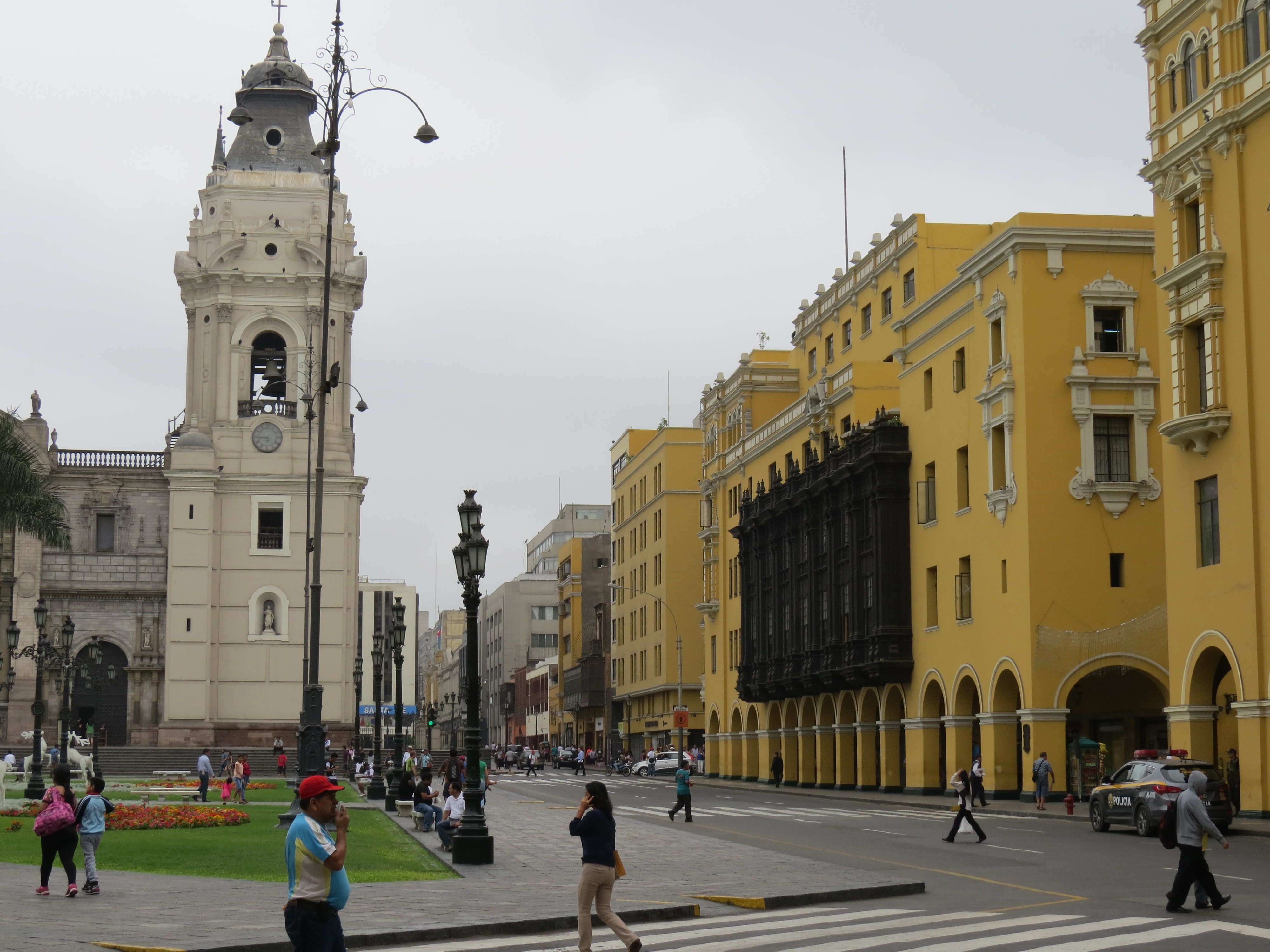 Når man ikke har sykkel får man bruke taxi. Så jeg tok en taxi ned til ‘Centro histórico de Lima’ for å se litt av de flotte bygningene. Første stopp var Plaza de Armas eller også kalt Plaza Mayor. Dette skal være den eldste plassen i byen og stedet der Francisco Pizarro grunnla Lima i 1535. Bygningen rundt Plaza Mayor heter bl.a. Palacio de Gobierno, Palacio Arzobispal og Cathedral of Lima.