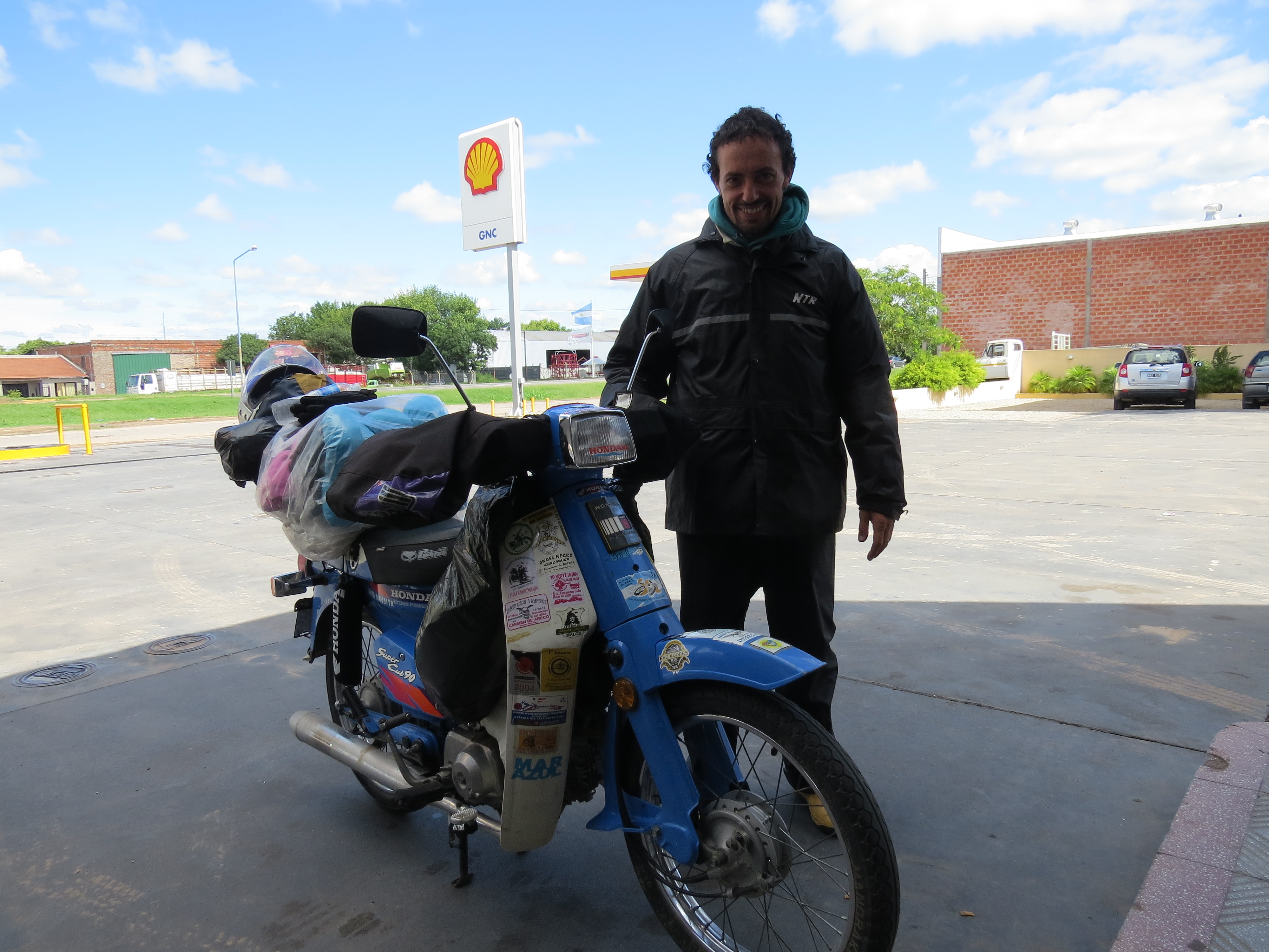 Som sagt møter man mange folk og ett sted jeg stoppet traff jeg på denne fyren. Han snakket ikke Engelsk men vi kommuniserte etter beste evne. Han kjørte en Honda 90cc og kom fra Buenos Aires i regnvær. Her hvor vi møttes var det 30C og strålende sol. Han tok så mange bilder at jeg syntes nesten jeg måtte ta ett bilde av han også 🙂