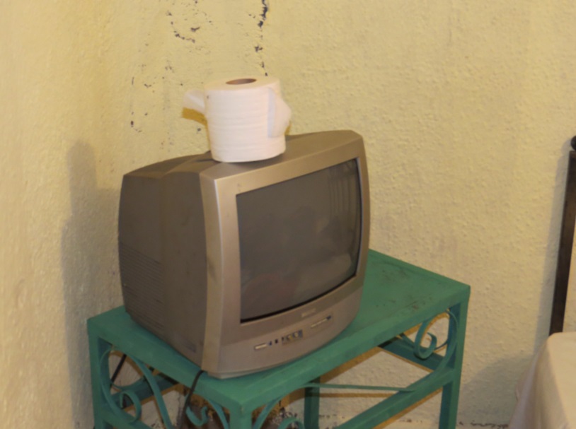 Å John var privilegert som fikk tv, pute og toalett papir. Jeg fikk bare toalett papir 😦