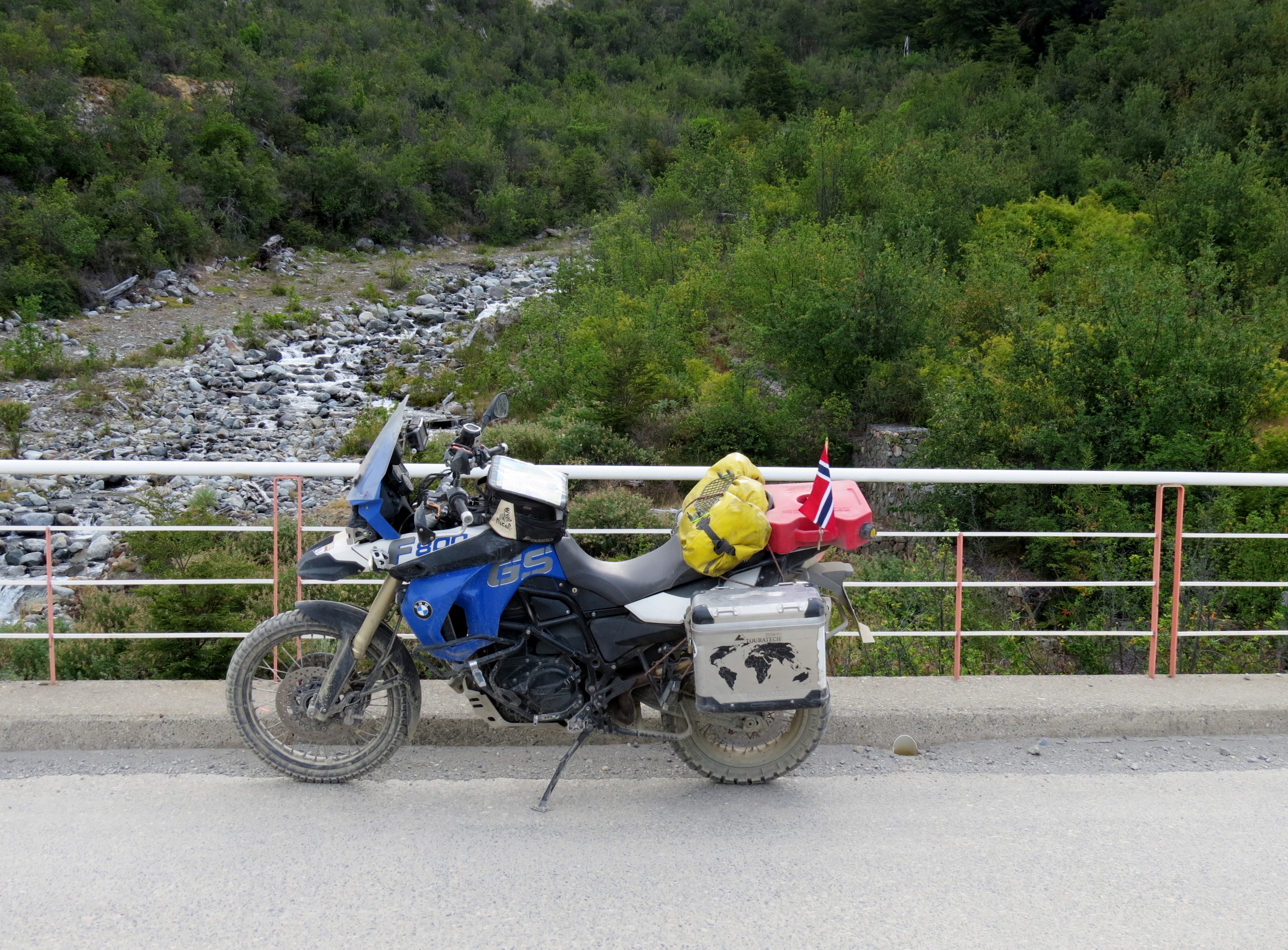 Men som videoen viser skal det snart gå over til veiarbeid, støvete grusveier og desverre også en tragisk ulykke med 6 personer skadet. Vi ble derfor stående i kø ganske lenge, men i bilen foran meg var det 2 stk fra Canada så dermed hadde jeg litt selskap 🙂 Rett før køen løste seg opp fikk jeg også selskap av en kar fra Tyskland. Han hadde hørt at det skulle være en Nordmann på en BMW langs denne veien (via en felles ‘bekjent’) så vi kjørte sammen ett stykke videre.