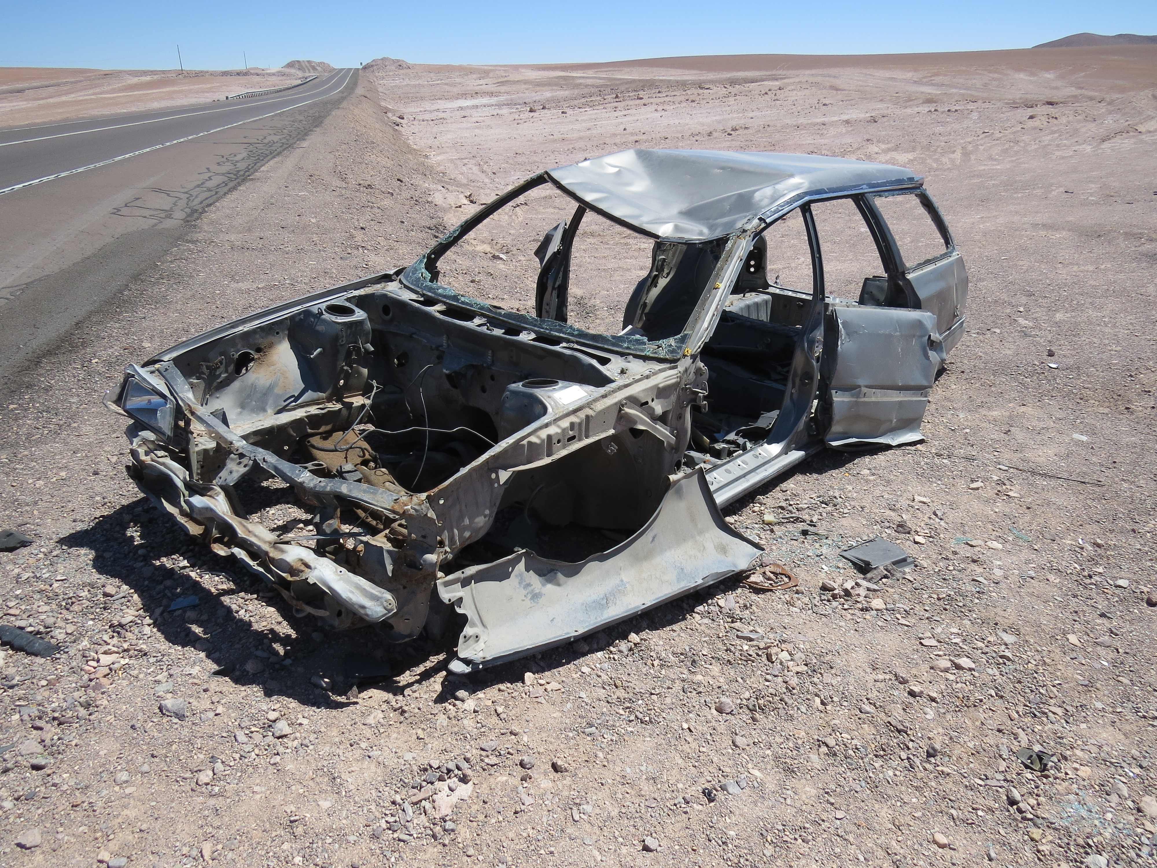 At veiene er kjedelig påvirker ttydeligis også mange bilførere. Det står mange slike vrak langs veien.