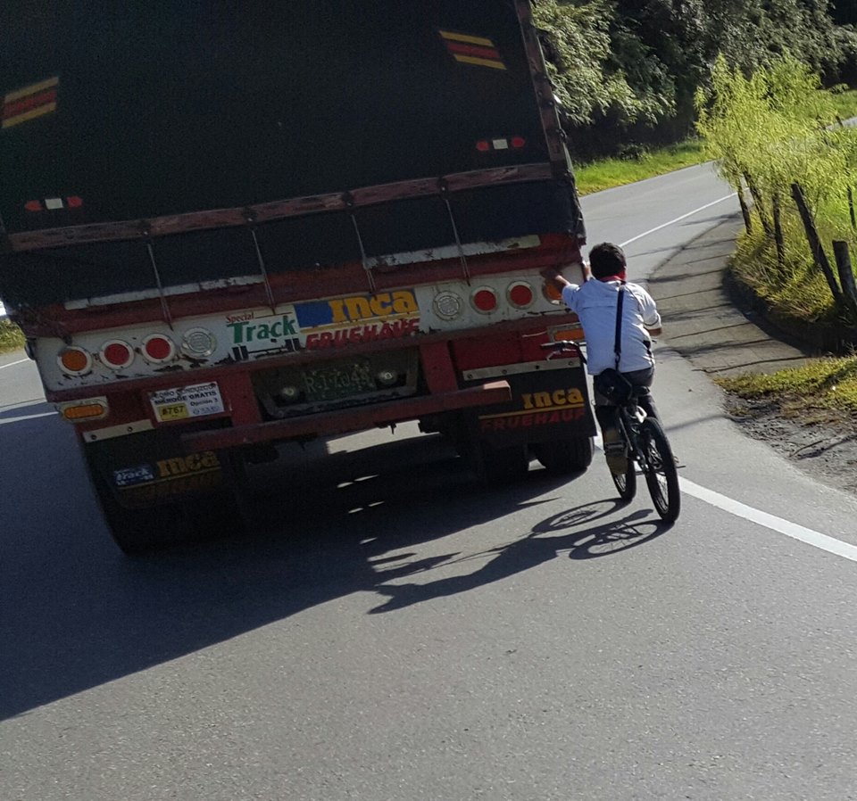 Rett på utsiden av Medellin tok vi farvel med Dan og Krista. Nina og jeg hadde planer om å stoppe her i Medellin for bl.a. Bytte dekk på sykkelen, men Dan og Krista skulle kjøre videre. I en kø hvor Nina og jeg line splittet (tror Nina var litt bekymret) tok vi igjen Dan og Krista som holdt seg i køen. Dette var siste gang vi så de for denne gang. Håper på å treffe de igjen senere på turen.
