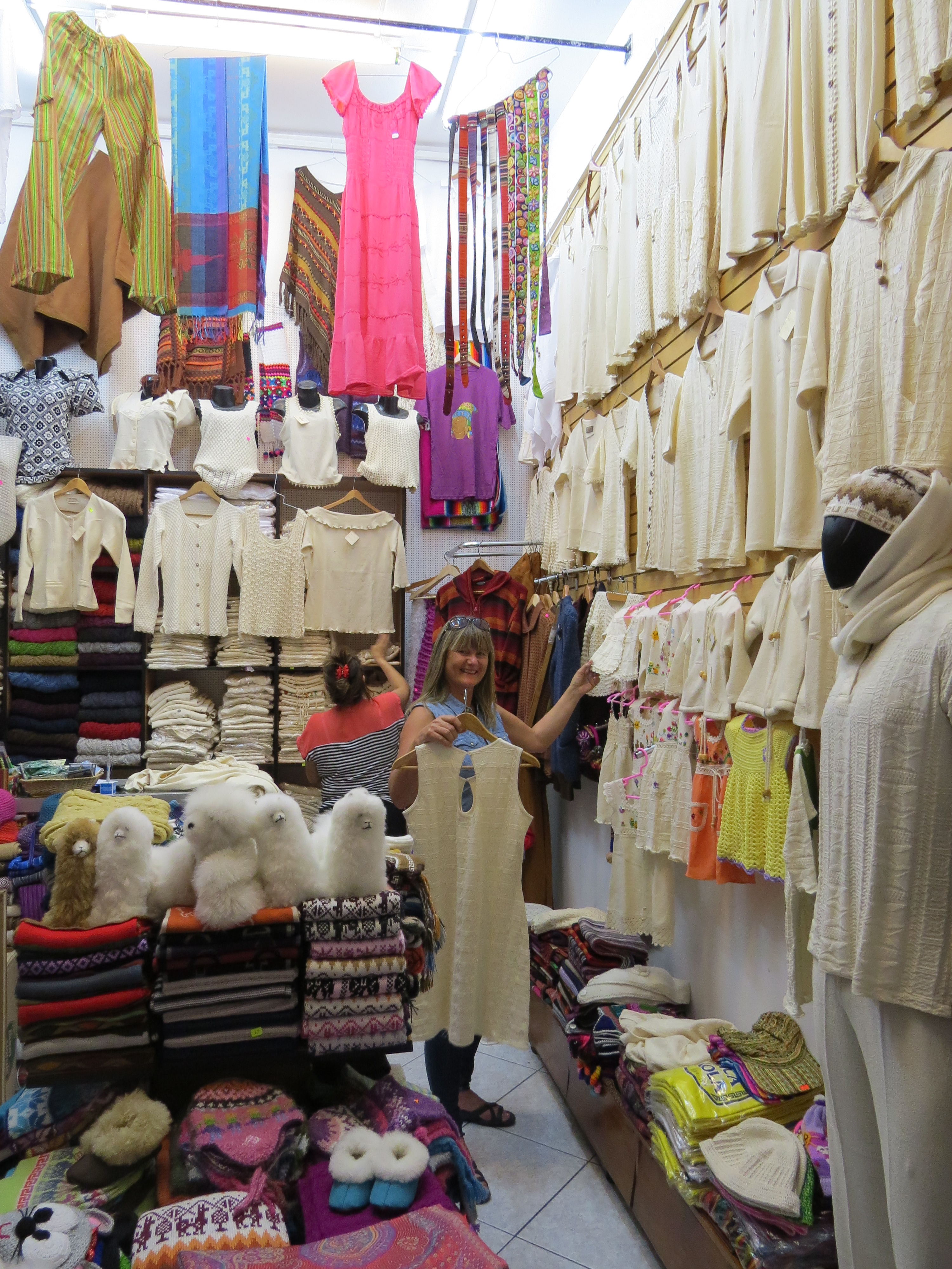 Senere på kvelden ble det også en tur til Inka Markedet for å sjekke ut hva de hadde. Heldigvis er vi på sykkeltur så det er lett å argumentere med selgere som vil selge alt mellom himmel og jord, og det er ‘relativt’ enkelt å overbevise Nina også at det ikke er plass. Skal ho kjøpe noe, må ho også kaste noe 🙂