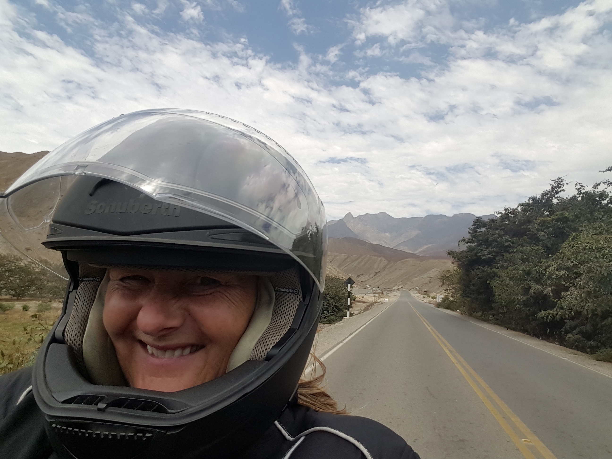 Selv om by trafikken, dårlige fjellveier, bratte stup og tynn luft i høyden kunne virke litt skremmende når man sitter bak som passasjer virket det like vell som om ho koste seg mesteparten av turen.