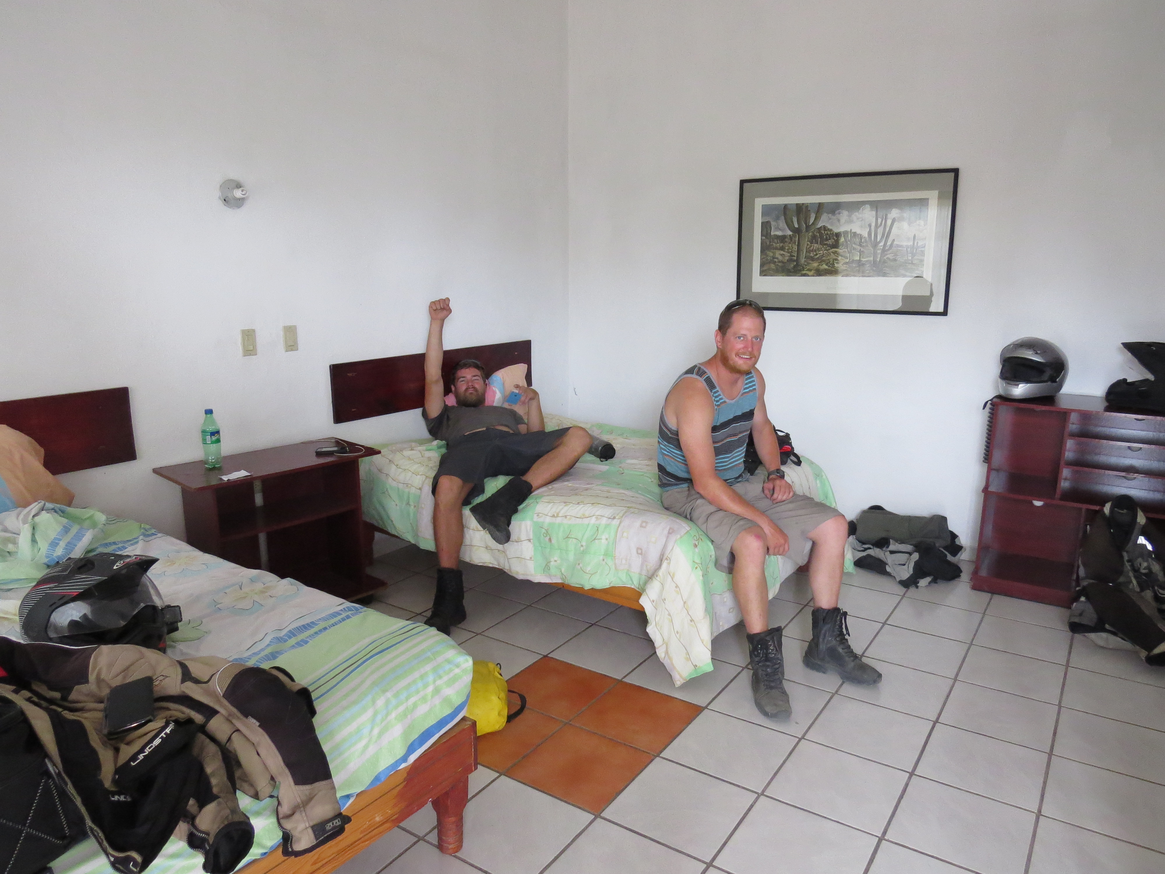 Mike og Dana som har vært her i Mexico i nesten 30år, driver denne biker restauranten og serverer gode hamburgere, og enda bedre Margarita 🙂 Jeg så derfor ingen grunn til å reise herfra med det første. Next door kunne jeg få ett rom til 300 pesos (150kr), så sykkelen ble parkert og jeg ble sittende i baren til den stengte (mange Margarita’er senere).