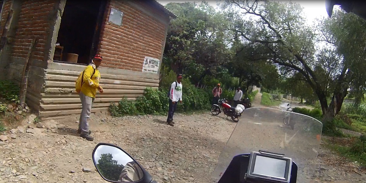 Varmen og slitet med å kjøre på disse veiene gjorde at vannet begynte å ta slutt. Men så ser jeg en klynge med hus i det fjerne å siden jeg bare har en flaske vann igjen håper jeg på å finne noe her. Agua er ett nyttig ord å kunne 🙂