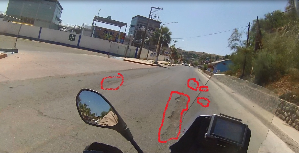 Å at man unngår alle hullene i veien siden jeg har sett enkelte steder hvor man har helt glasskår i hullene.
