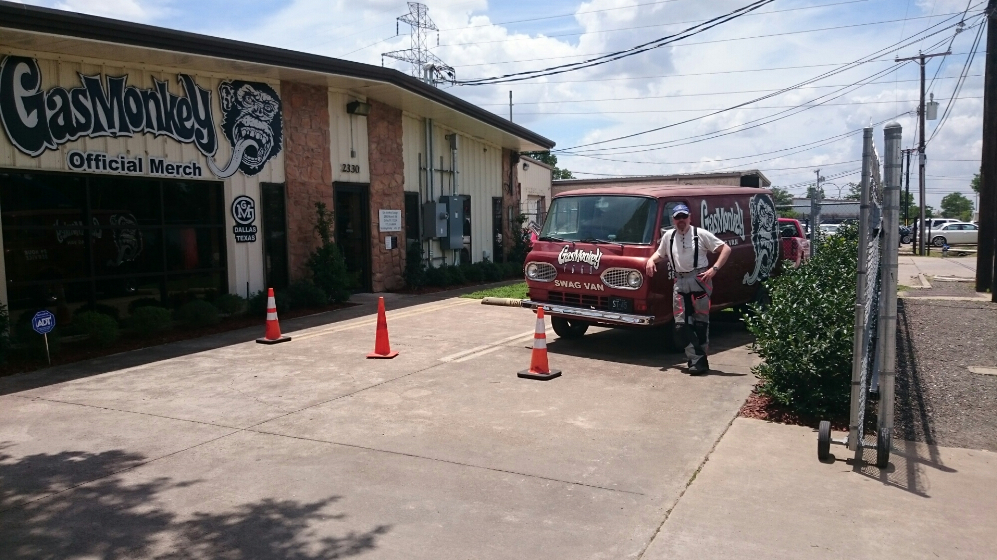 Etter bare 1 feilnavigering var vi fremme hos Gas Monkey Garage. Jeg har sett noen av disse programmene men på langt nær så mange som Terje (og TS). Terje måtte derfor fornye garderoben sin litt når han hadde mulighet. Ny caps ble innkjøpt.