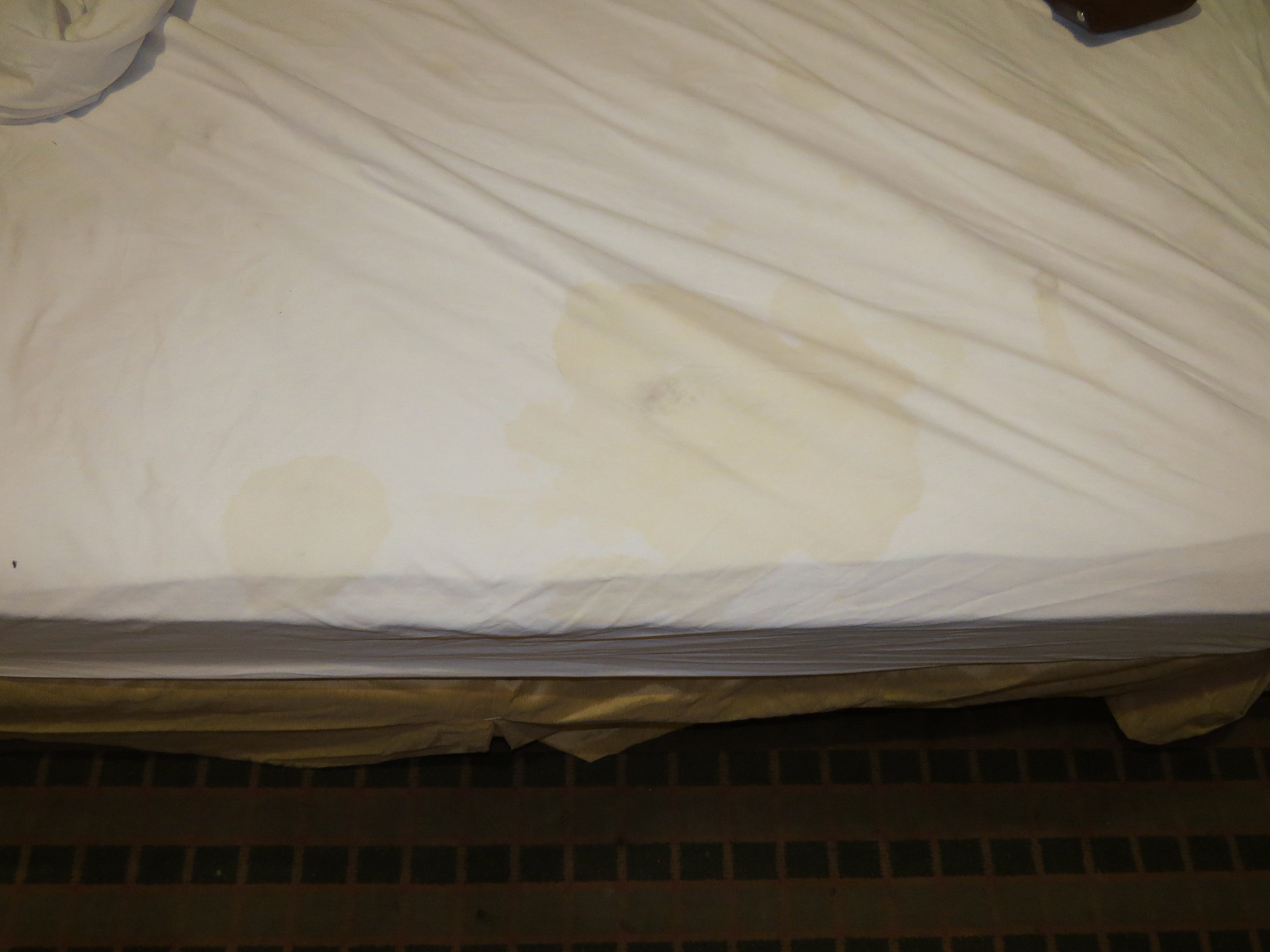 I går kveld hadde jeg glemt en av reglene mine å det var å sjekke lakenet når jeg kom inn på rommet. Heldigvis sjekket jeg det ikke før jeg la meg, så dermed så jeg ikke før neste morgen at lakenet mest sannsynlig var pent brukt over lengre tid.