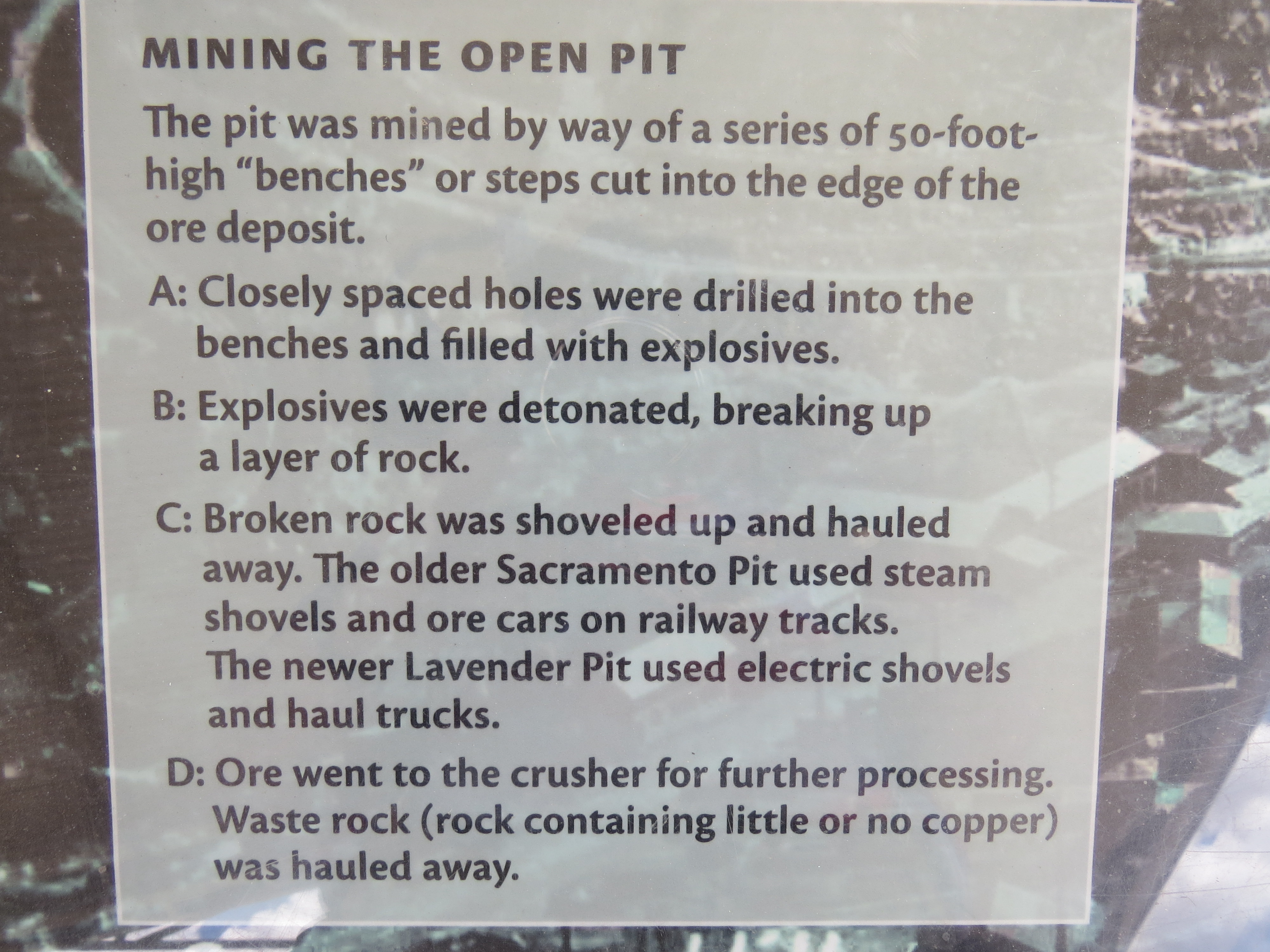 Rett på utsiden av byen Bisbee i Arizona så jeg at en av høydene på utsiden av byen ikke var naturlig. Jeg studerte den litt og fant ut at her måtte det være gruvedrift. Å størrelsen på haugen tydet på at gruven måtte være av en enorm størrelse.