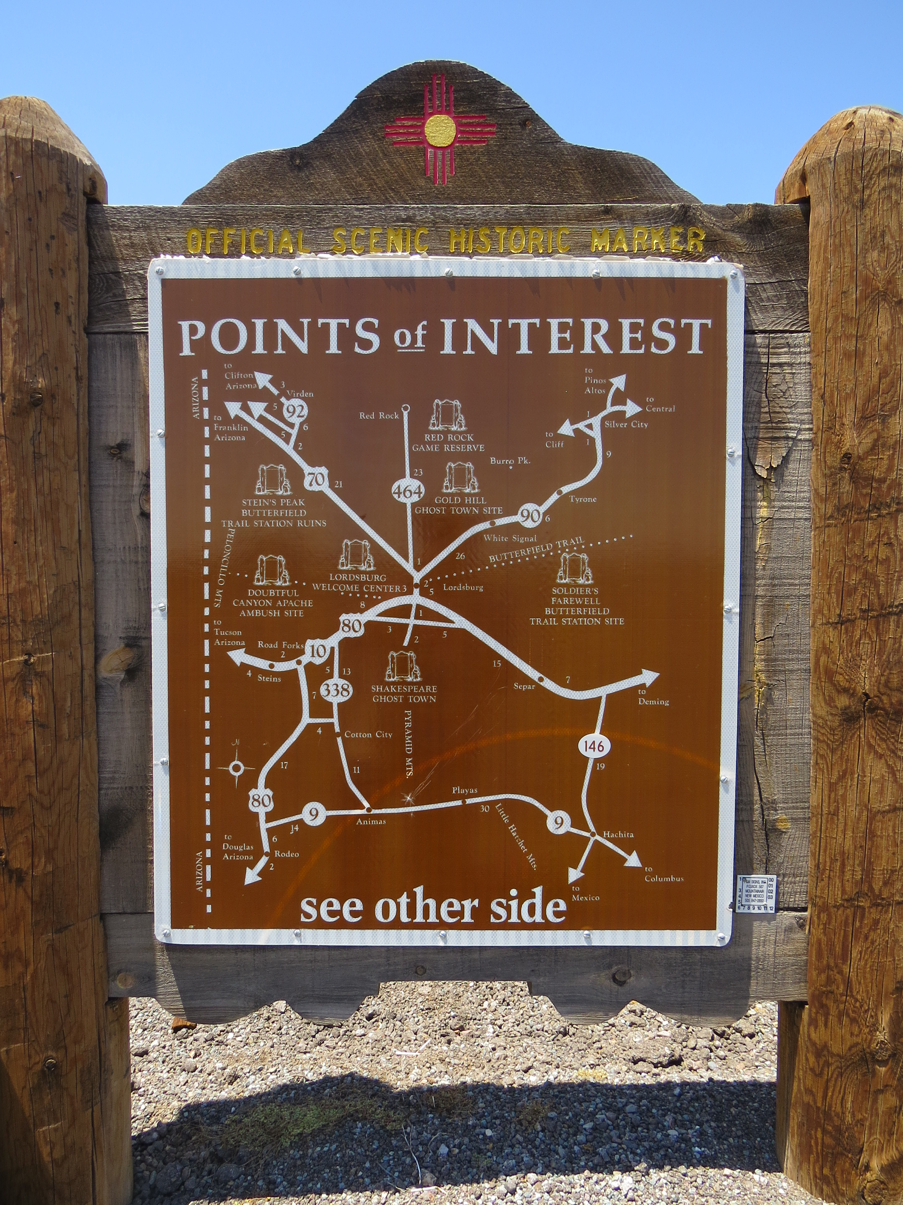 El Paso ligger jo i hjørne mellom Texas, Mexico og New Mexico så etter bare noen få mil var jeg inne i New Mexico. Målet for dagen var å kjøre vestover på U.S. Highway 80 eller historic route 80 som den også kalles i stede for å ligge på Interstate 10.