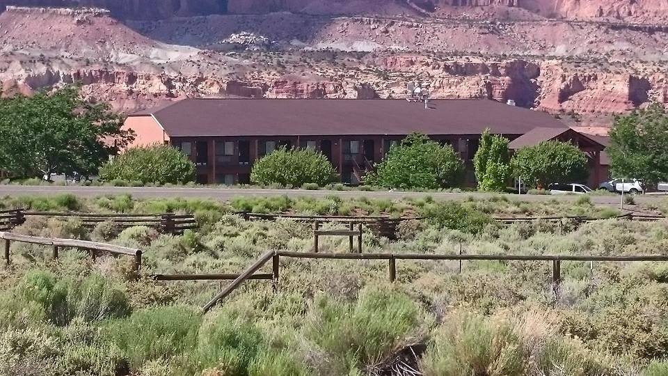 Vi endte dagen i Hanksville som er en liten plass med tilsammen 4 gater, På bensin stasjonen så vi ett skilt med følgende tekst: «Vi har ingen bygdetulling. Vi bytter på.» Vi lo litt at denne teksten, startet opp syklene å kjørte bort på motellet å her traff vi sikkert de som hadde bygdetulling jobben denne uken. Først banket vi på feil dør å hørte bare en stemme rope at vi skulle gå inn neste dør. I det vi går inn her kommer det en kar vi burde hatt bilde av men ……. Han ble stående å holde seg til disken, rapet 3-4 ganger før han omsider klarte å stotre frem at en annen kar snart skulle komme å hjelpe oss. Han som dukket opp måtte nok også holde seg i disken for å klare å stå i ro men siden han skulle betjene oss hadde han jo gyldig grunn til det. Humøret var det ikke noe å si noe på å han smilte så begge tennene vistes.