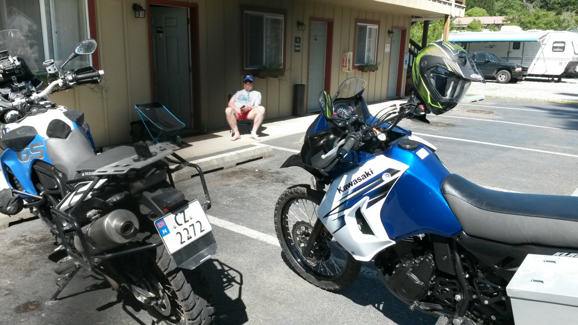 Terje gjorde seg ferdig først å så ble det Norske flagget plantet på sin KLR 650 for første gang ☺