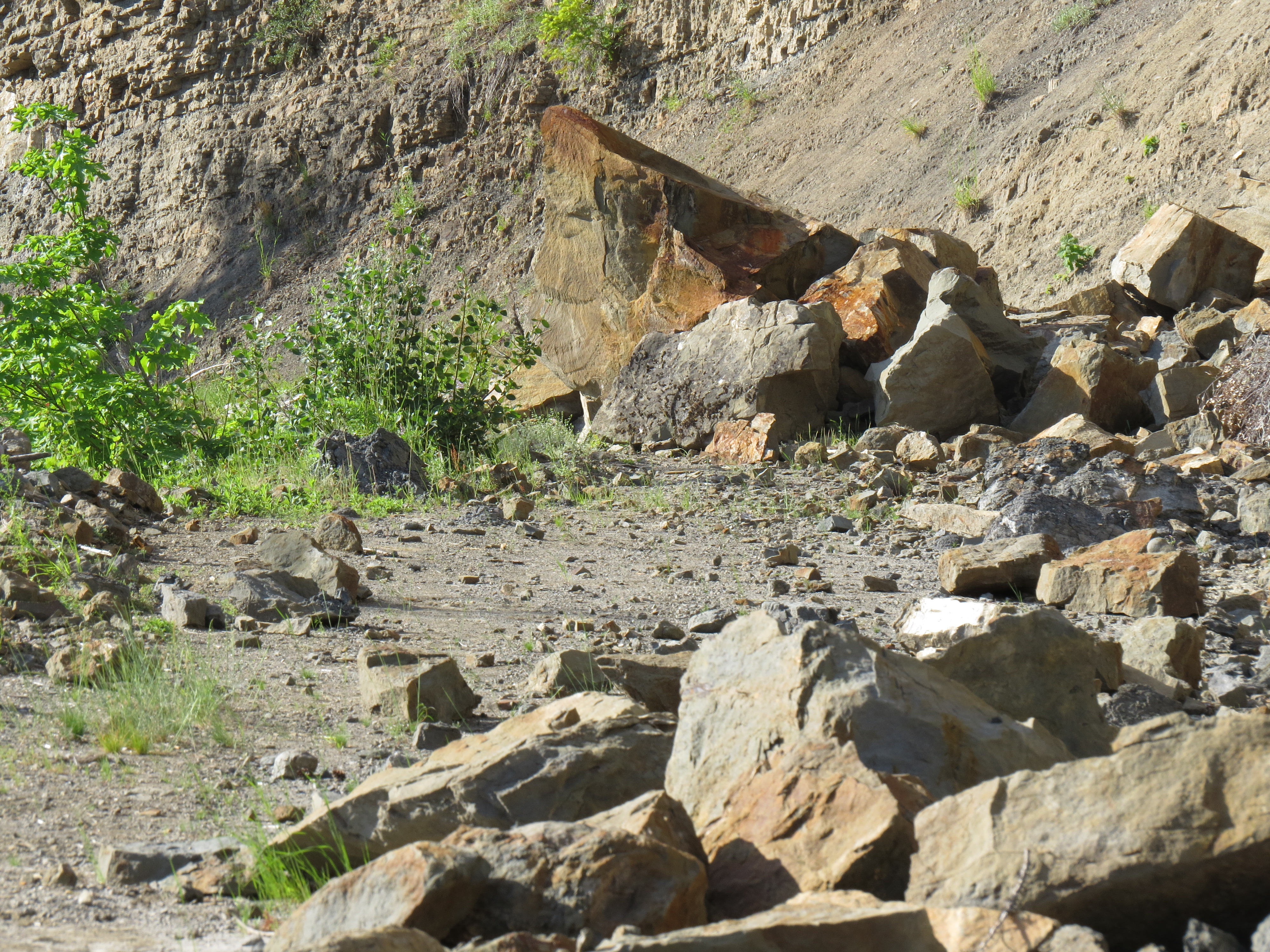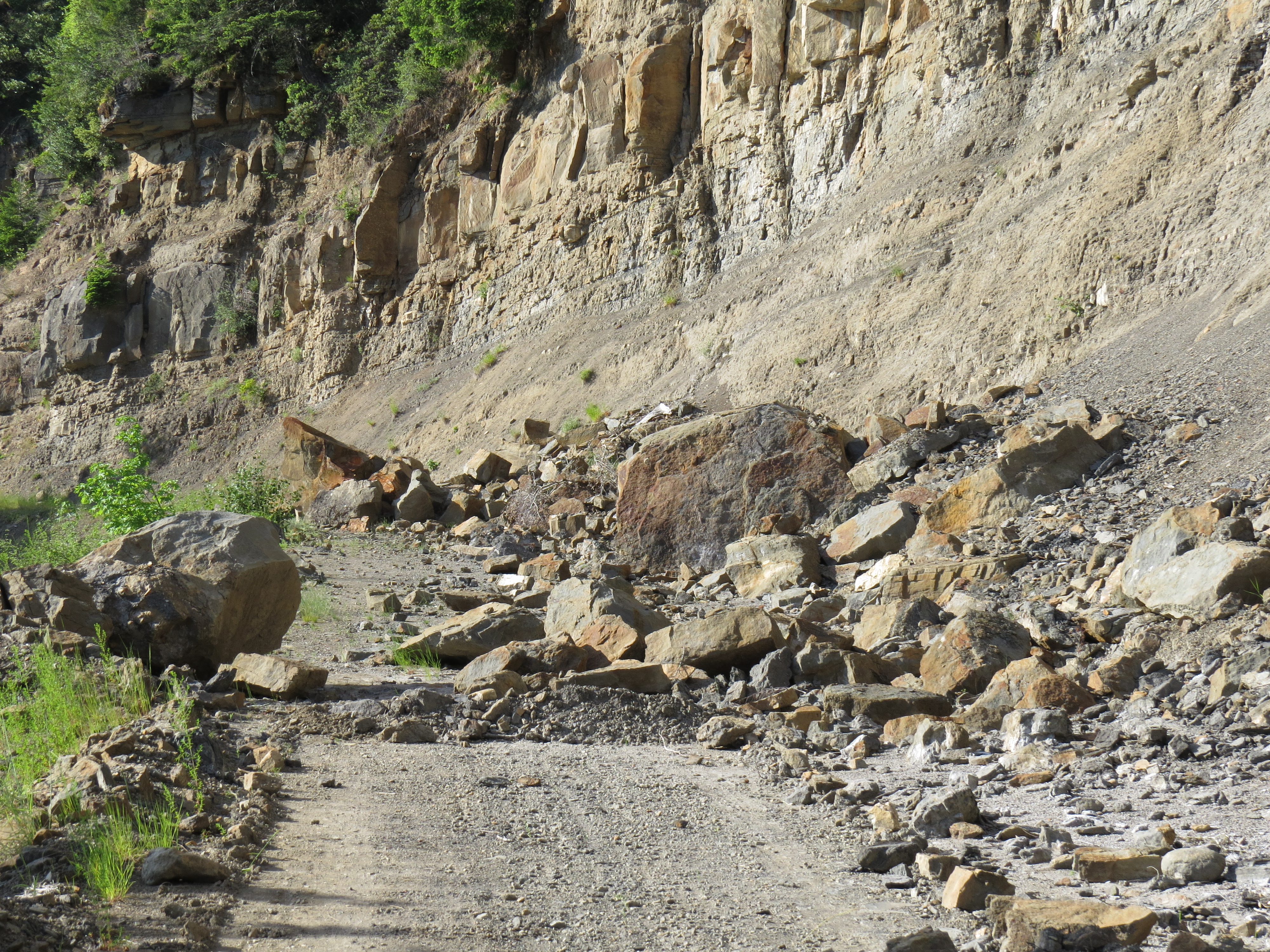 Neste utfordring skulle bli ett steinras.  Det sto ett skilt om at veien var stengt men vi kjørte like vell videre.  Å steinraset fant vi.