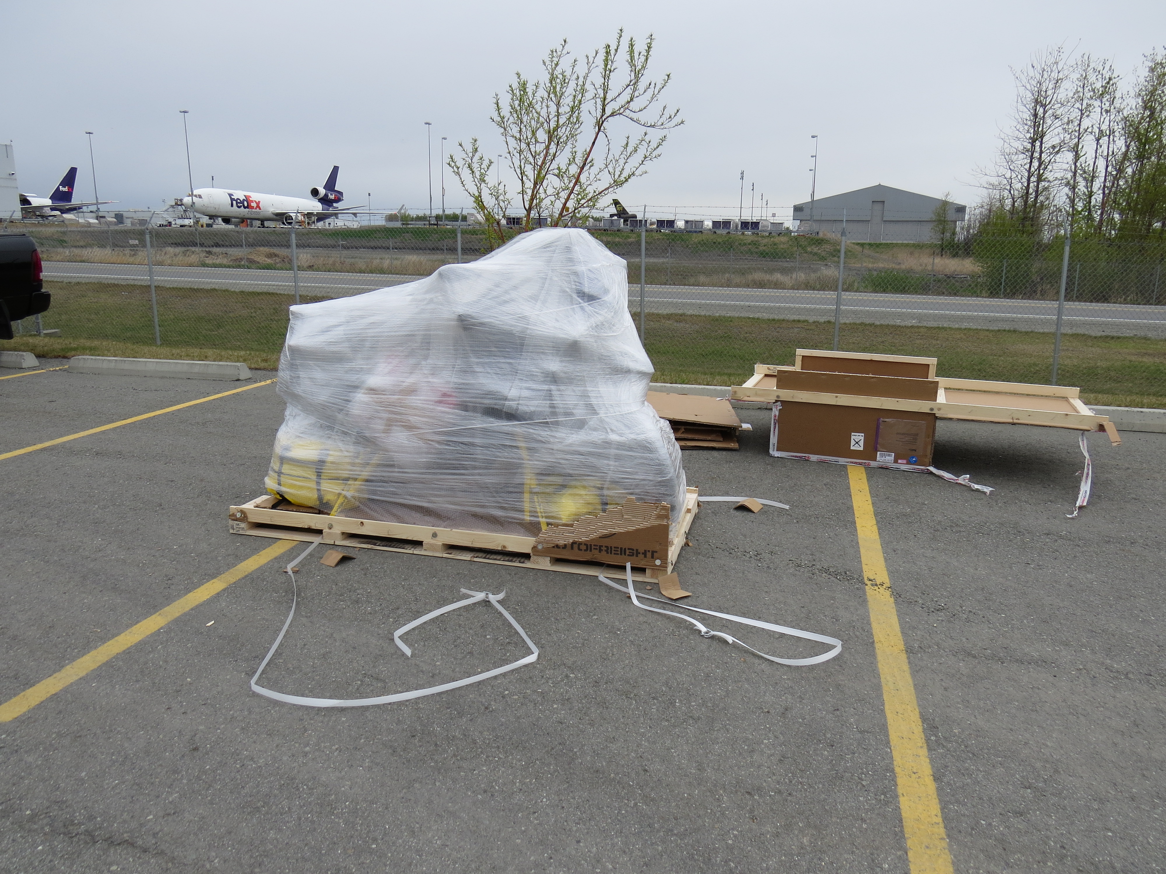 Fikk meg en spasertur bort til Fedex og fikk etter litt venting sykkelen. De var også greie og rutinerte. Sykkelen ble kjørt med en truck på en parkeringsplass og det åpnet jeg den opp, rigget den, kledde meg om og kjørte klokken 11 til nærmeste bensinstasjon.