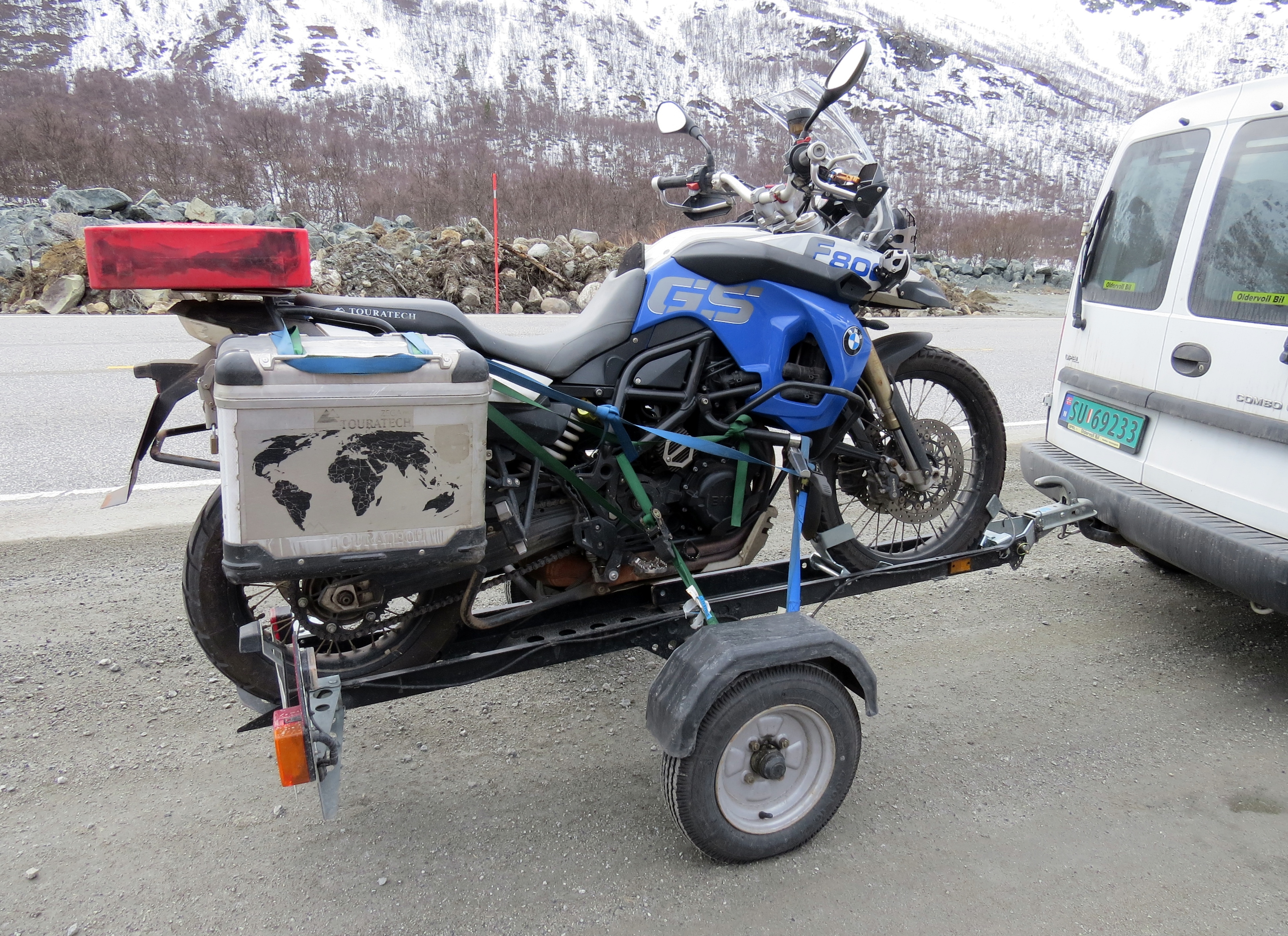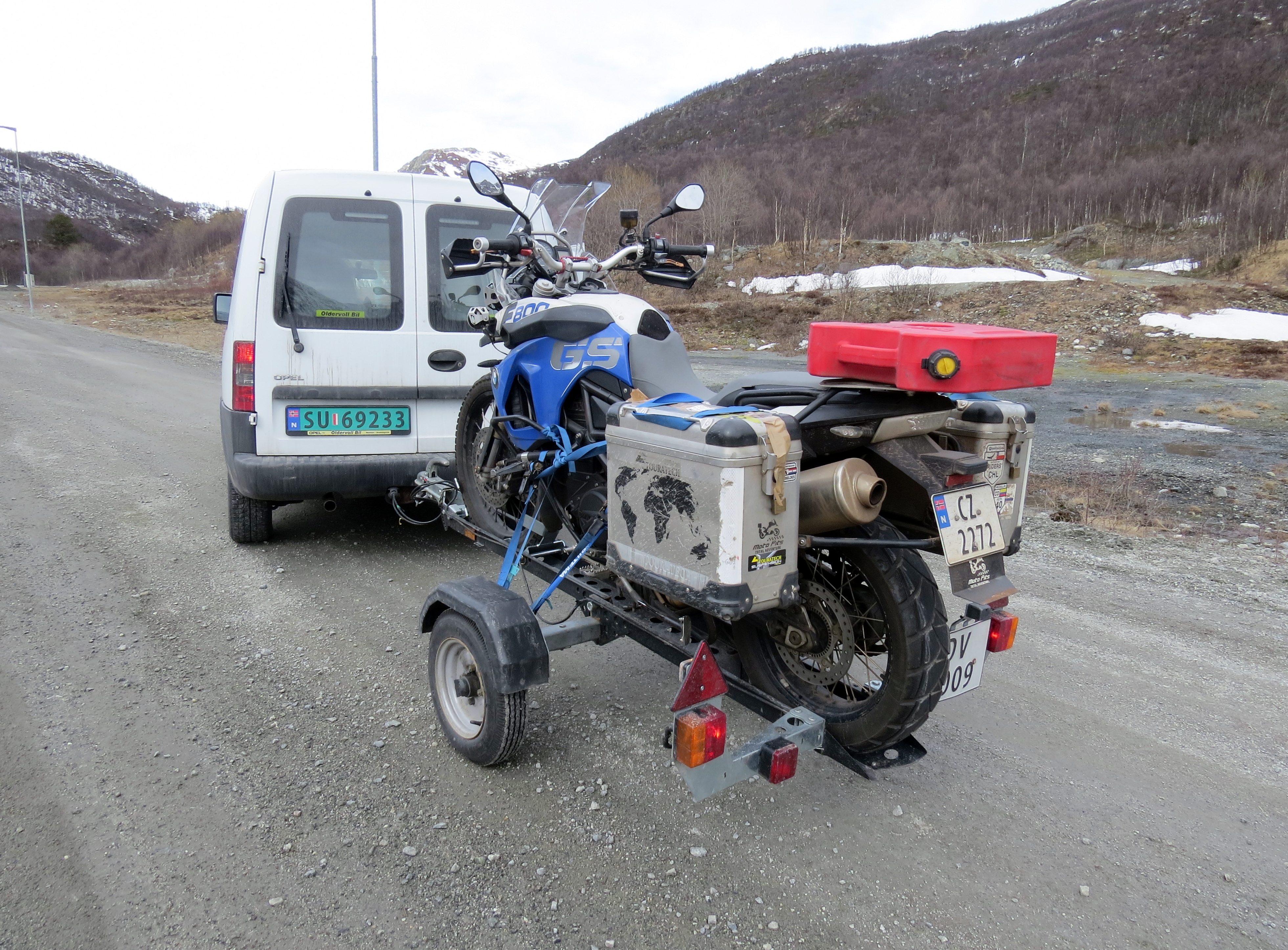 Alu koffertene fungerer jo som støtfanger når man går på tryne så de har selvfølgelig noen merker men fungerer fortsatt. Den ekstra bensinkannen blir muligens ikke brukt med det første men uansett kjekt å ha hvis man skulle finne på noe som medfører lange strekninger utenfor tett bebygde strøk 🙂