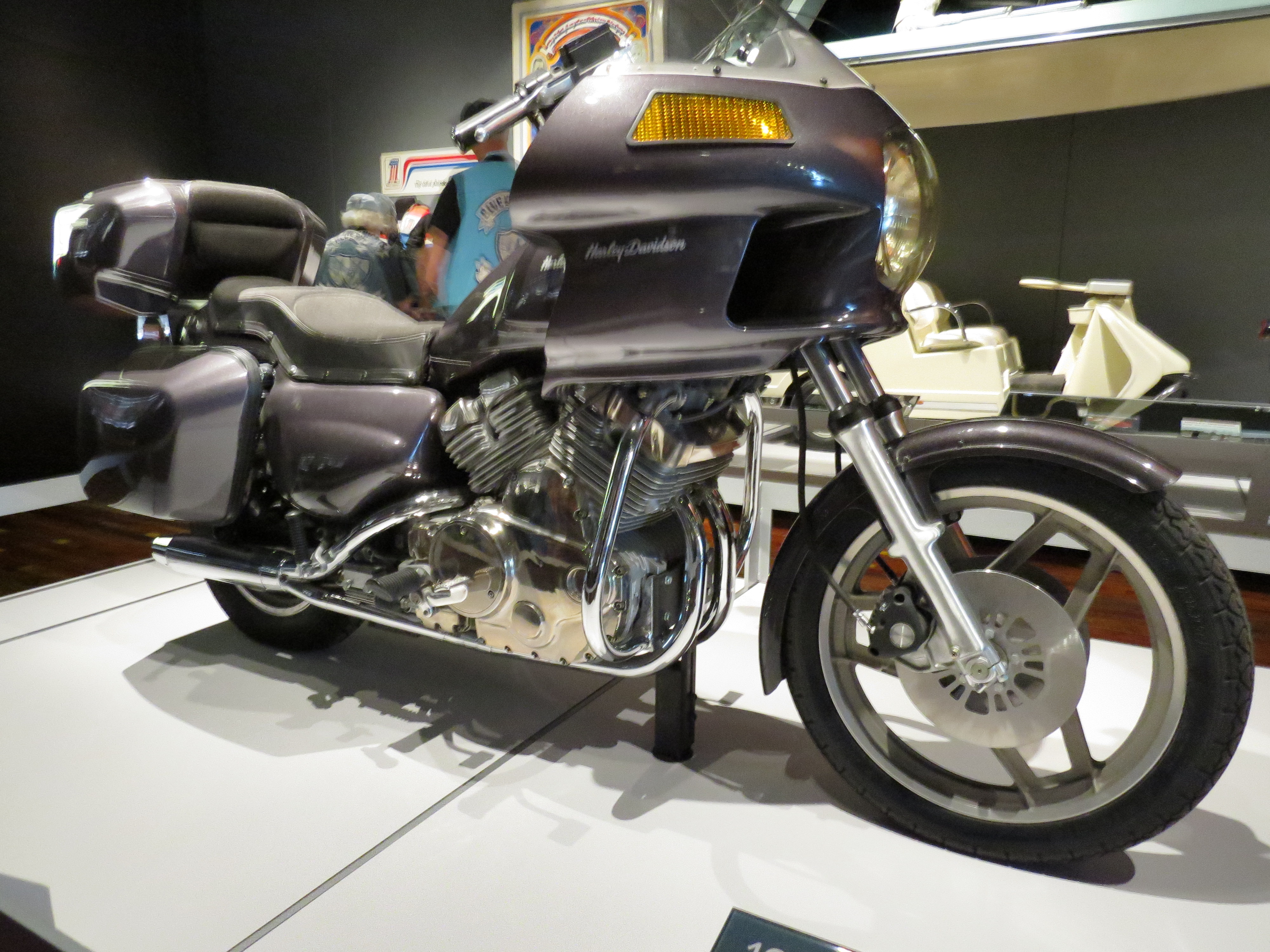 Prototype motorsykler som aldri sluppet ut på markedet er jo også artig å kunne se. Denne Harley Davidson fra 1981 er en Nova Touring OHC V-Four. Den kunne blitt den første fire sylinder motoren med kjededrift og vannkjøling fra Harley beregnet for gatekjøring men prosjektet stoppet bl.a. pga at motor selskapet hadde pengeproblemer og alt stoppet opp før de kunne sette igang produksjonen.