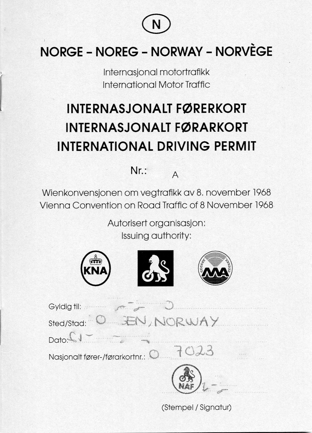 Den vanlige Norske førerkortet er så vidt jeg vet bare gyldig i EU- og EØS-land, så skal man besøke andre land må man altså sjekke her. Jeg har kjørt i mange land som står på listen over land som krever internasjonalt førerkort men aldri blitt bedt om å vise det frem, men for å være forberedt kan det være lurt å ha anskaffet seg det. Prisen er tross alt bare 175 kr for NAF medlemmer og 275 kr for de som ikke er medlemmer.