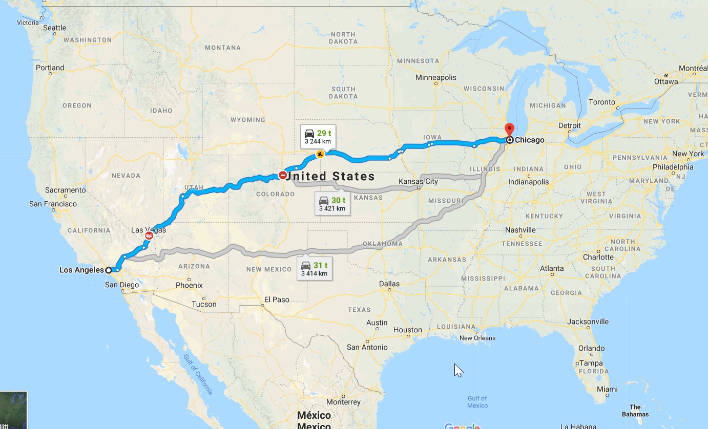 Da ser det ut til at kabalen er lagt og jeg vet nå hvilke turer jeg skal kjøre i 2018. Slik det ser ut så langt skal jeg fly til Los Angeles for å plukke opp en den utstyr for så å kjøre dette til Chicago hvor resten av gjengen venter. Turen er ca på 3250 km litt avhengig av hvilken rute jeg velger