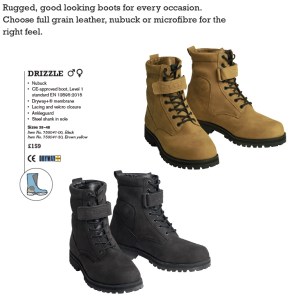 Drizzle støvlene fikk jeg dessverre ikke testet. En av kundene på første turen hvor jeg kjørte følgebil ødela sine boots og overtok derfor mine helt nye Drizzle boots. Han kunne valgt å låne de til han fikk kjøpt seg nye, men han likte støvlene så godt at han ville overta de. Det får vell være ett tegn på at de var gode å gå i og gode å kjøre med.