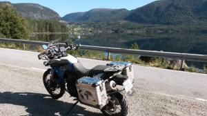 Mens vi kjørte langs Åraksfjorden på mottsatt side av Rv 9, holdt jeg på å kjøre på en elg. Dvs jeg traff den så vidt i bakfoten. Jeg rakk å bråbremse og fikk bare ett slag i styret når jeg traff elgen (dekket), så jeg klarte å holde meg på 2 hjul. Elgen derimot snublet i sine egne bein, og falt overende på andre siden av veien. Den reiste seg opp, tittet på oss og forsvant så inn i skogen.