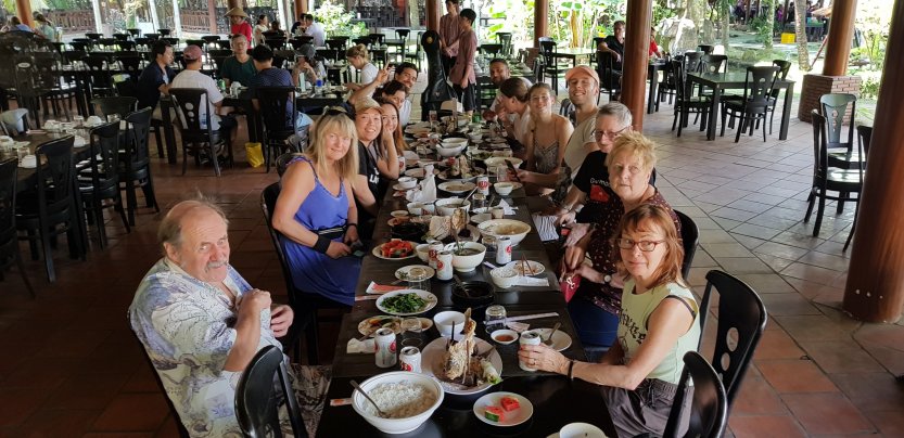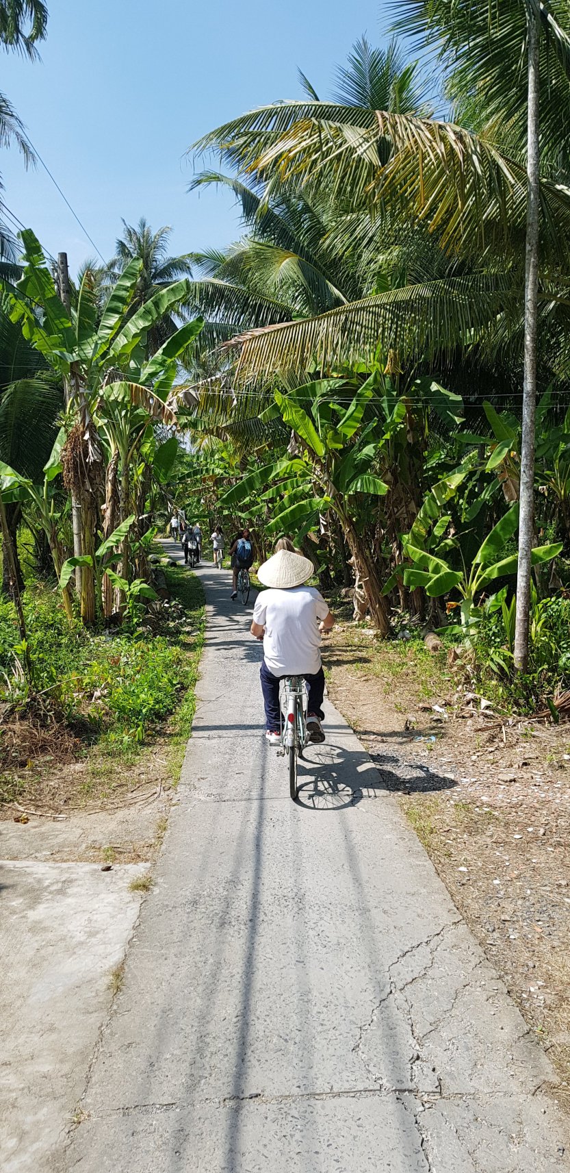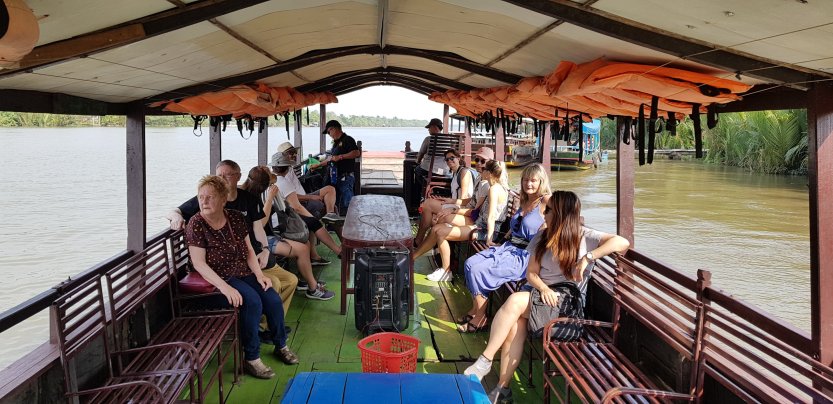 Vi la byen bak og og kjørte ut på fredelige rismarkeder til vi kom til My Tho. Videre gikk turen med motorbåt på Tien elven til Skilpaddeholmen (Qui).