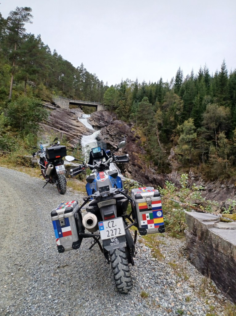 Det ble foreslått en tur inn til Bolstadøyri for å sjekke ut veiene der. Jeg hadde kjørt Øvstedalvegen i 2016 når jeg hadde en R1200GSA, men min gamle traver F800GS Trophy fra 2012 som jeg har hatt siden den bare var 4 mnd gammel og som nå har gått 140.000 km (på telleren i alle fall) har ikke vært her tidligere. Helt klart verdt turen inn her denne flotte søndagen.