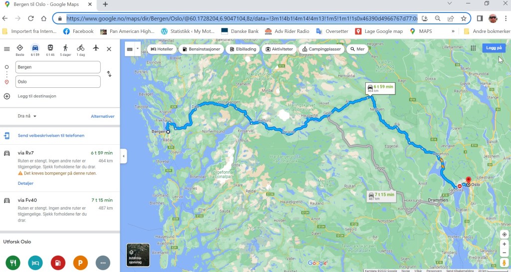 Koper inn GoogleMaps URL’n til det hvite feltet og trykk på Let’s Go. I løpet av noen sekunder har du en fiks ferdig GPX fil i ‘Nedlasting’ mappen din som er på 1820 kb i dette tilfelle hvor ruta går fra Bergen til Oslo.